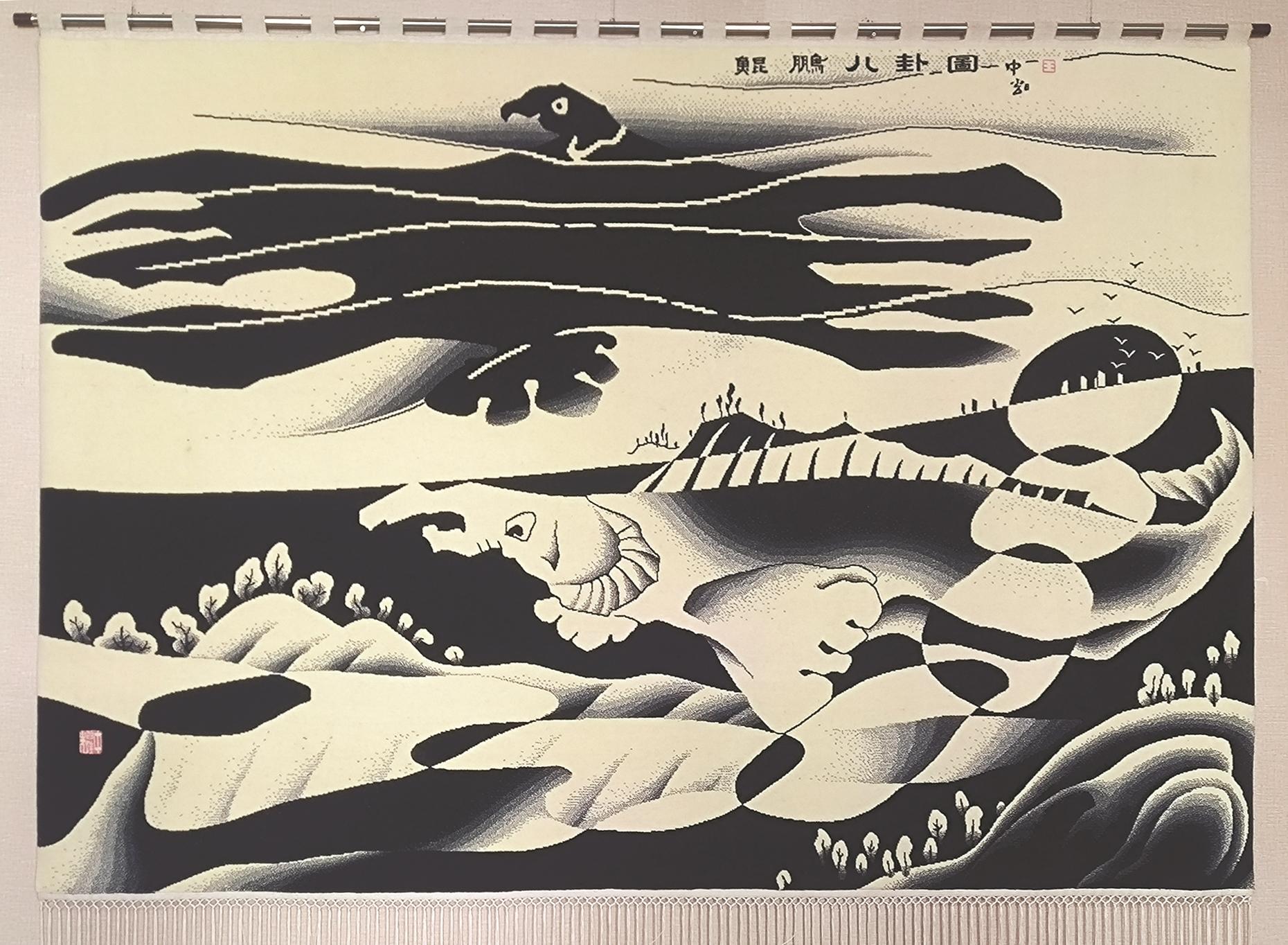 据了解,艺术挂毯的设计编织包含了美术设计、羊毛梳理、毛纱染色、纱线洗涤、栽绒编织等数十道工序,由于是纯手工制造、不能有任何环节的失误与疏漏,往往耗时巨大,一幅艺术挂毯作品往往需要数月甚至数年的时间。王中耀的艺术挂毯作品以中华传统文化为文化底色,以细微处体现人文情怀为特色,他创作的六十余组挂毯作品深受社会各界人士喜爱。