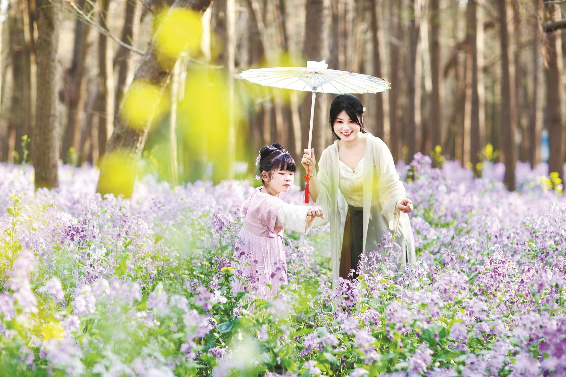 春暖花开时,人们纷纷踏青游玩,不负春光。