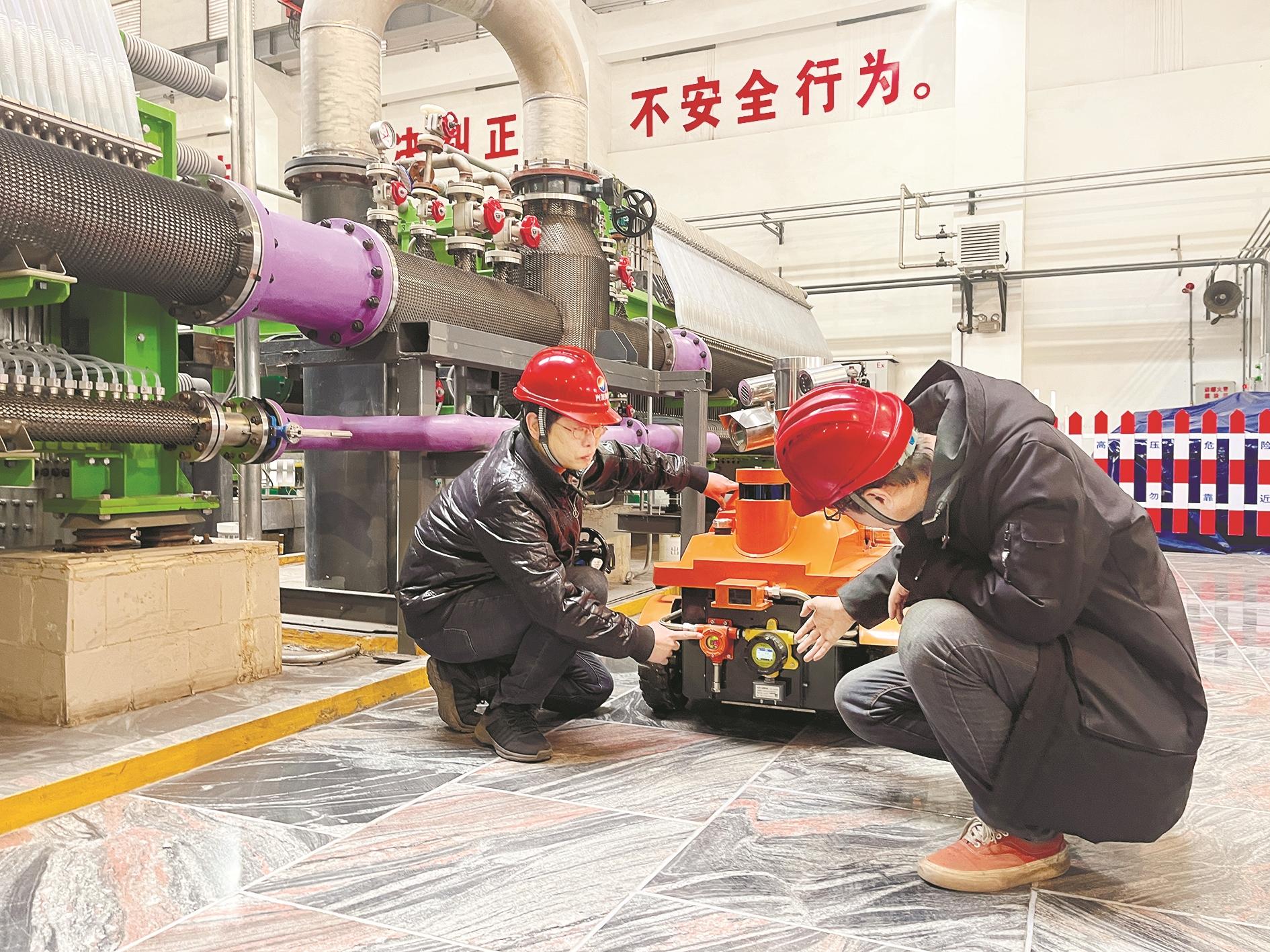内蒙古兴发科技有限公司智慧工厂,工人们在检修设备。(赵政宇 摄)