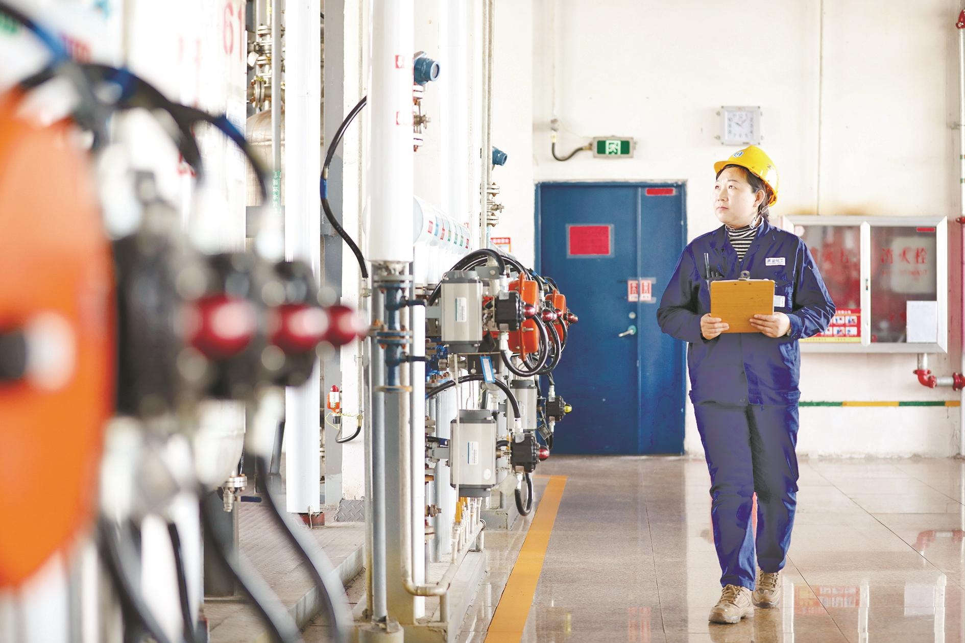内蒙古源宏精细化工有限公司生产车间,工作人员在巡检。(高瑞鹏 摄)