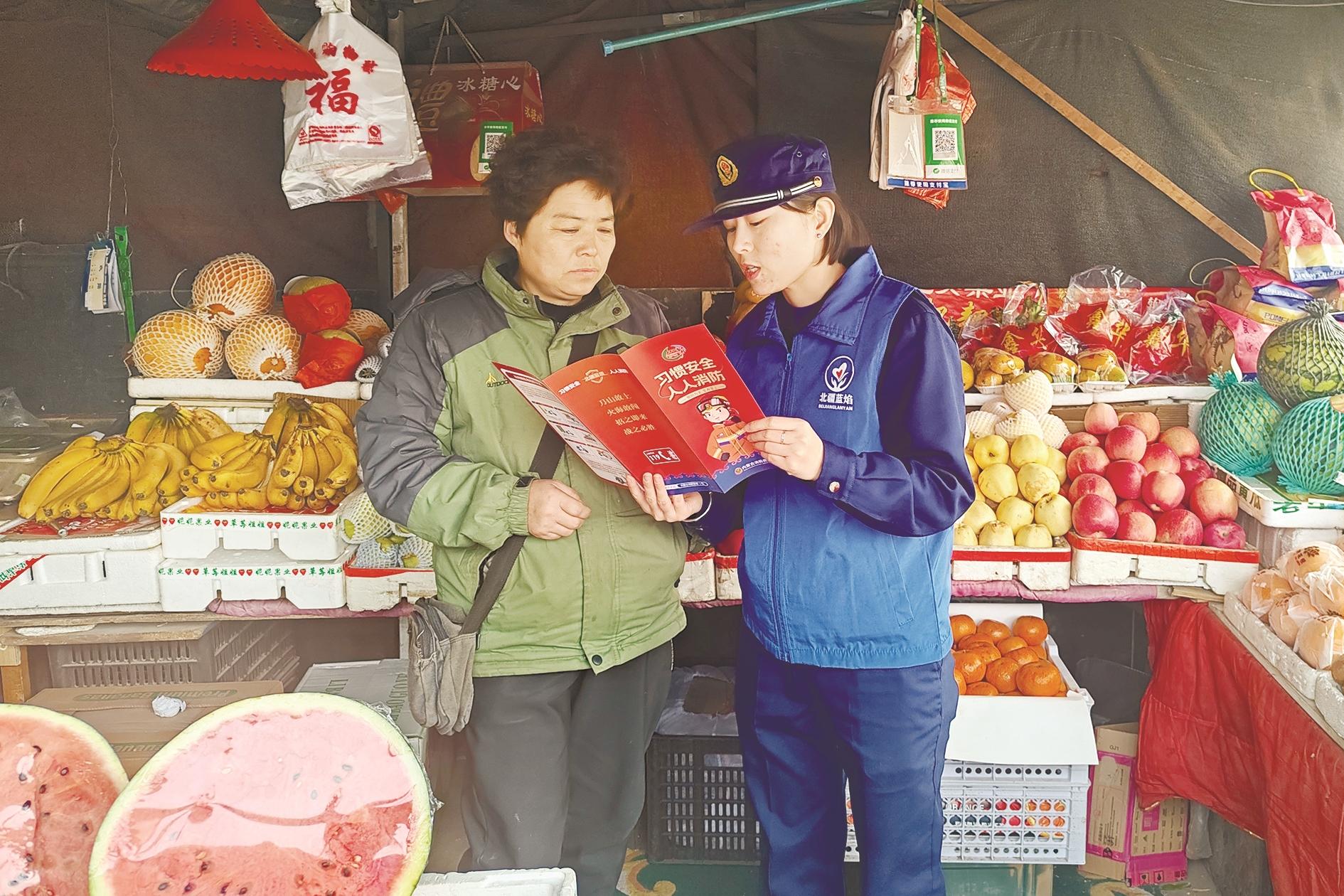 近日,海勃湾区消防救援大队开展消防安全宣传活动,做好春季火灾防范工作。图为消防队员向个体工商户宣传普及用火用电用气安全、火灾预防、应急疏散等知识。 (黄建飞 摄)