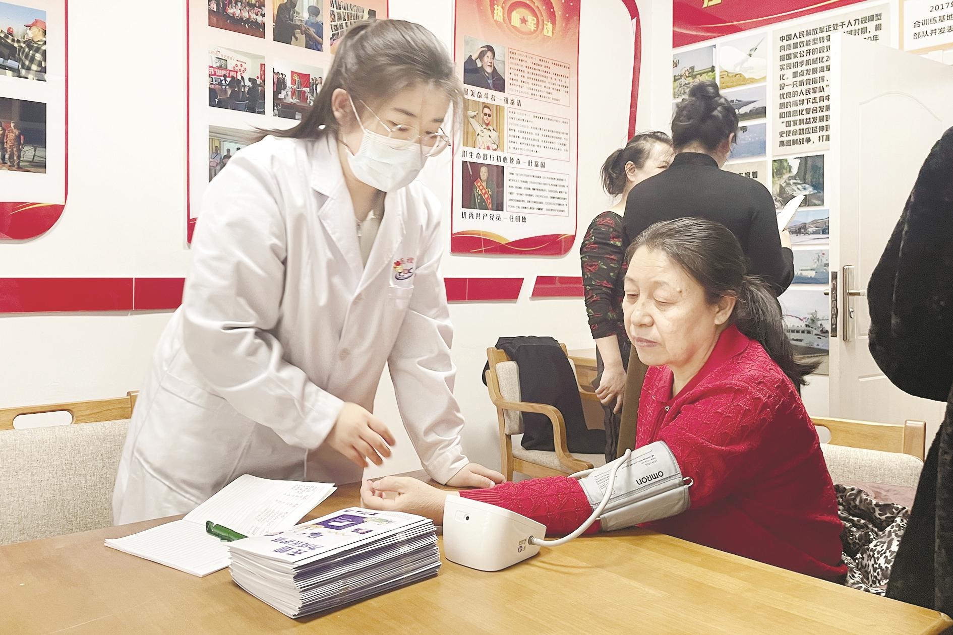 近日,海勃湾区新华街道新海社区开展健康义诊志愿服务活动。爱心医疗机构医务人员为辖区居民量血压、测血糖,检验眼睛耳朵等,并对患有常见慢性病的居民在生活、治疗等方面提出指导意见。 (黄建飞 摄)