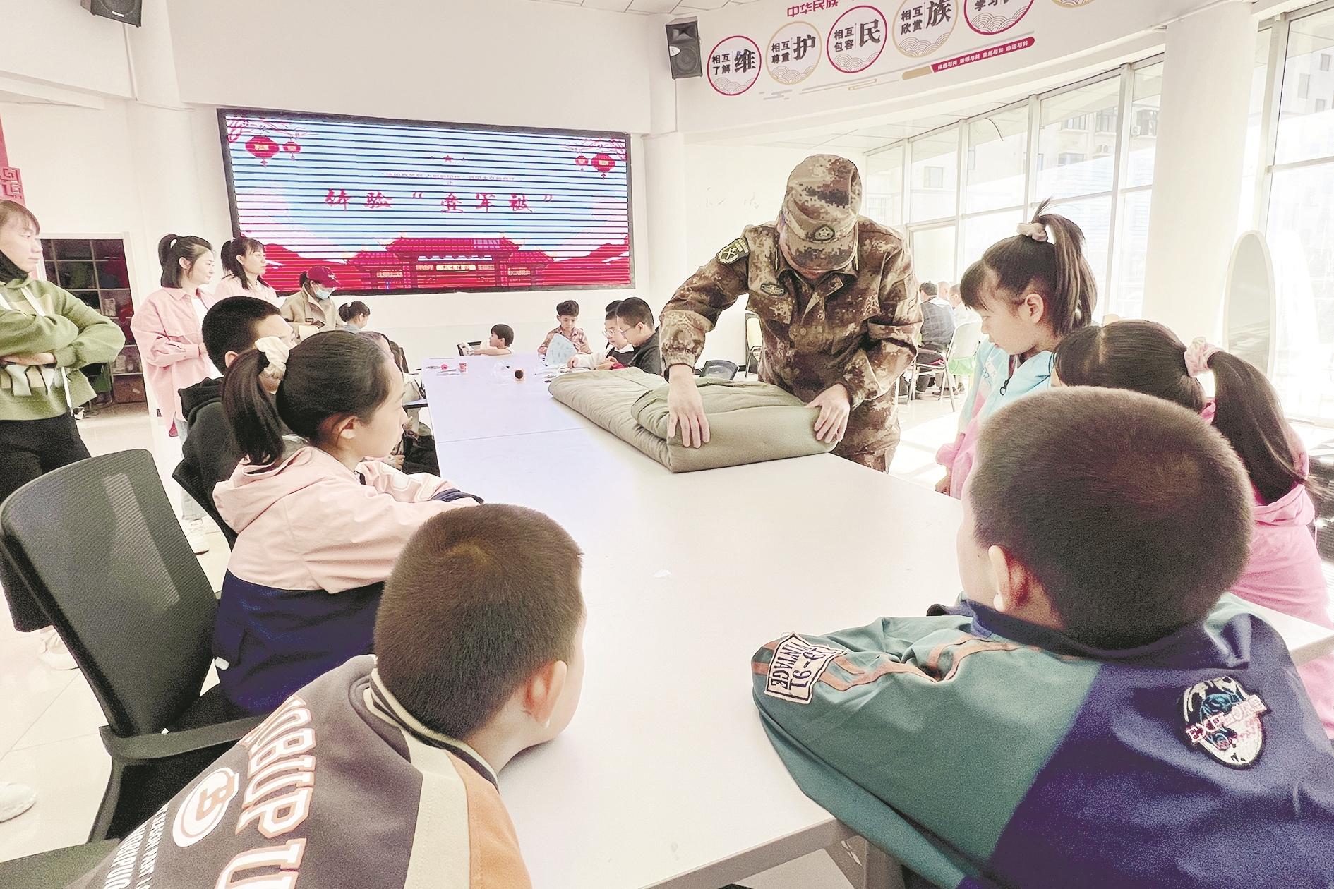 近日,海勃湾区滨河街道白楼社区开展了国家安全宣传教育活动。退役军人志愿者讲解了国家安全法等内容,并现场指导青少年叠军被,体验军旅生活。(黄建飞 摄)