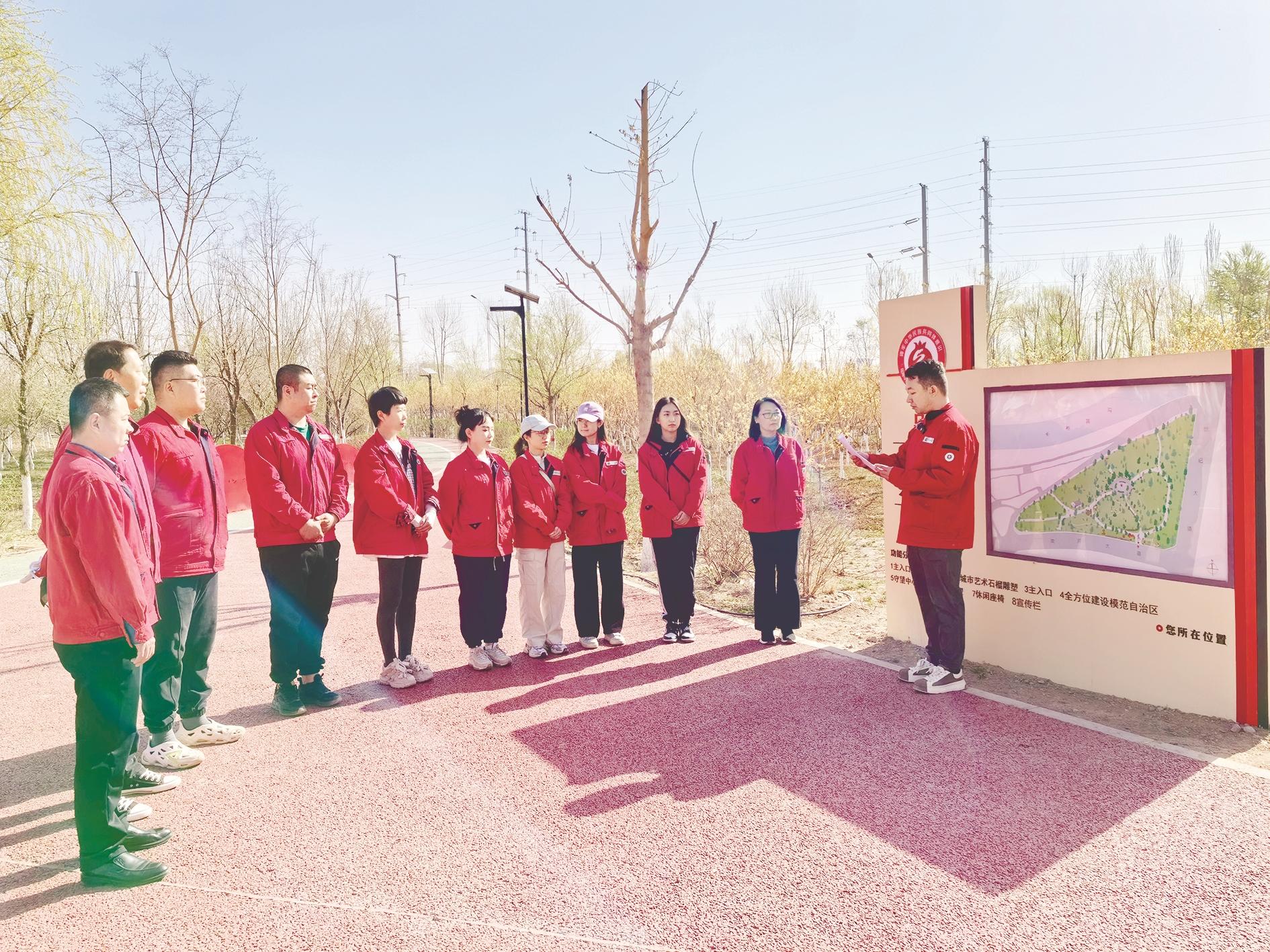 4月10日,内蒙古电力集团乌海滨河供电公司联合配电带电作业处组织党员干部来到市铸牢中华民族共同体意识主题公园,举办了“星海”理论宣讲志愿服务活动。 (李雪波 刘佳敏 摄)