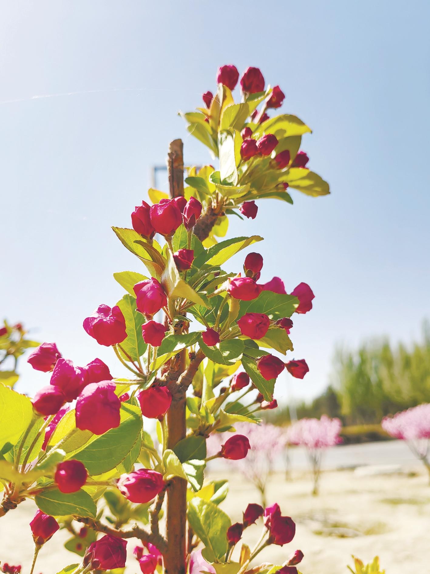 滨湖路旁花朵分外妖娆。