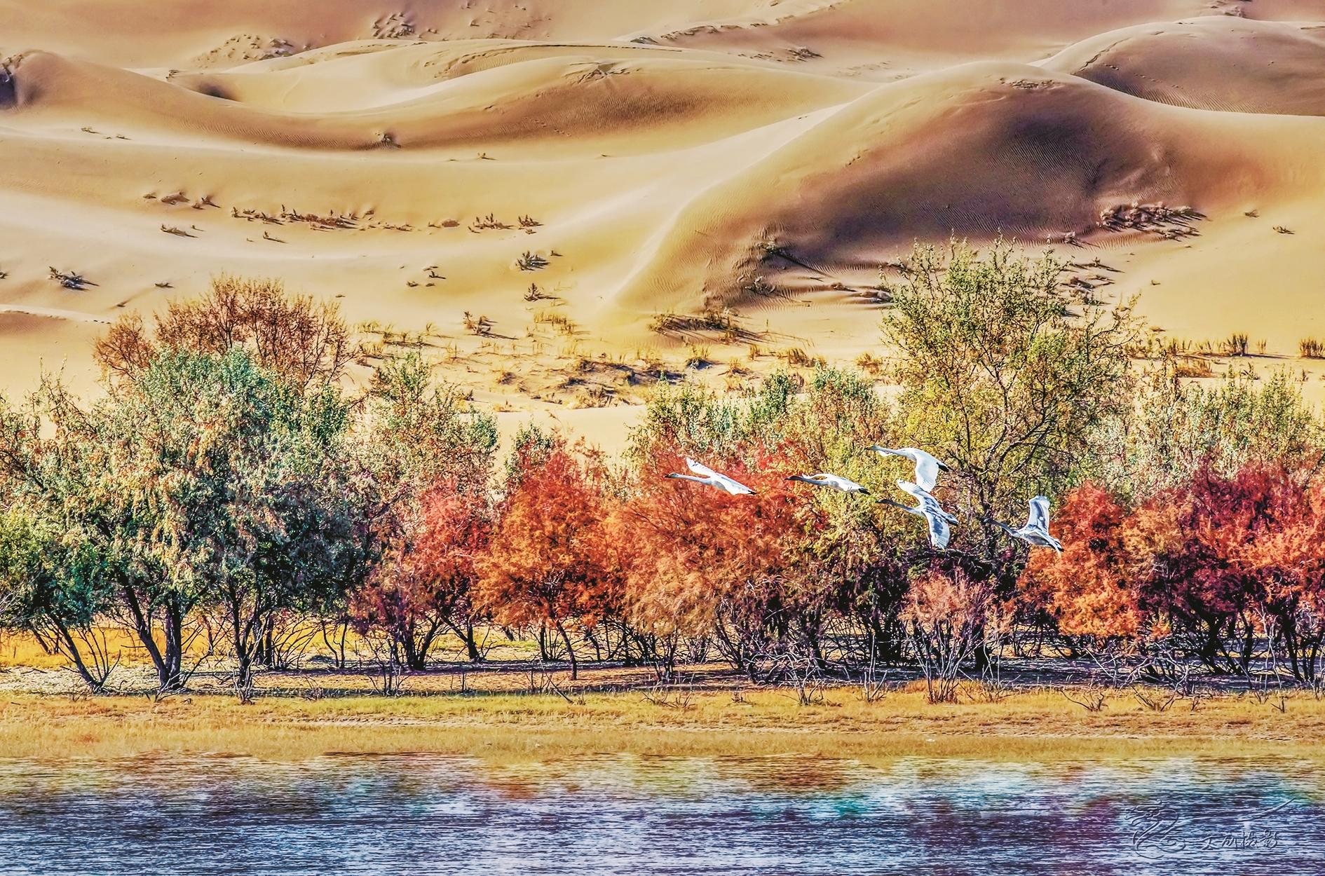 “我们几个人晚上8点多到沙漠,一直拍到凌晨三四点。夜晚的沙漠变化无常,前一分钟还特别安静,下一分钟可能就刮起风来了。为拍好星空,我举着相机,对着星空拍了很长时间。拍摄过程中没有感觉,等拍完后,我手都举不起来了。”他说。