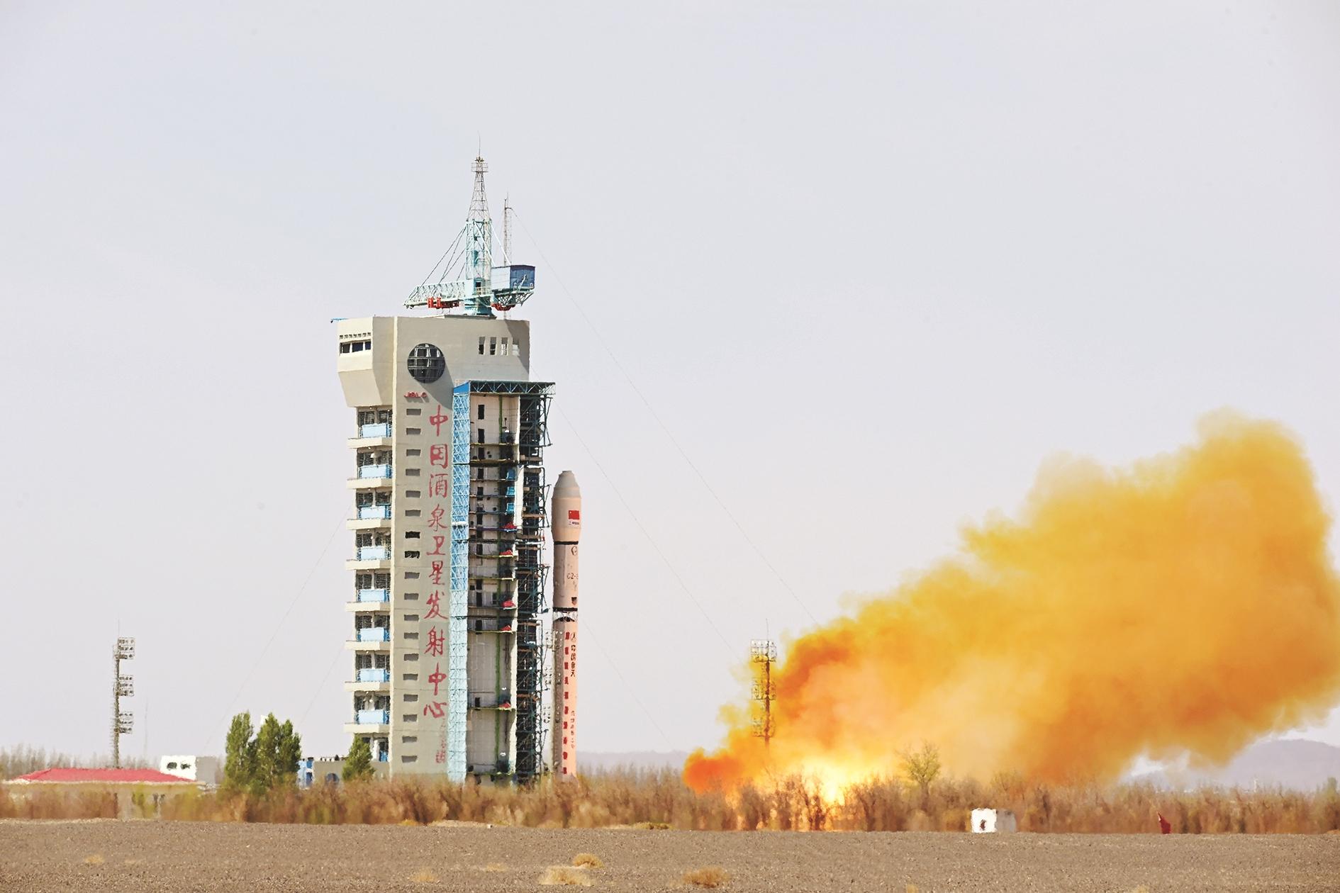 4月15日12时12分,我国在酒泉卫星发射中心使用长征二号丁运载火箭,成功将四维高景三号01星发射升空,卫星顺利进入预定轨道,发射任务获得圆满成功。 新华社发(汪江波 摄)