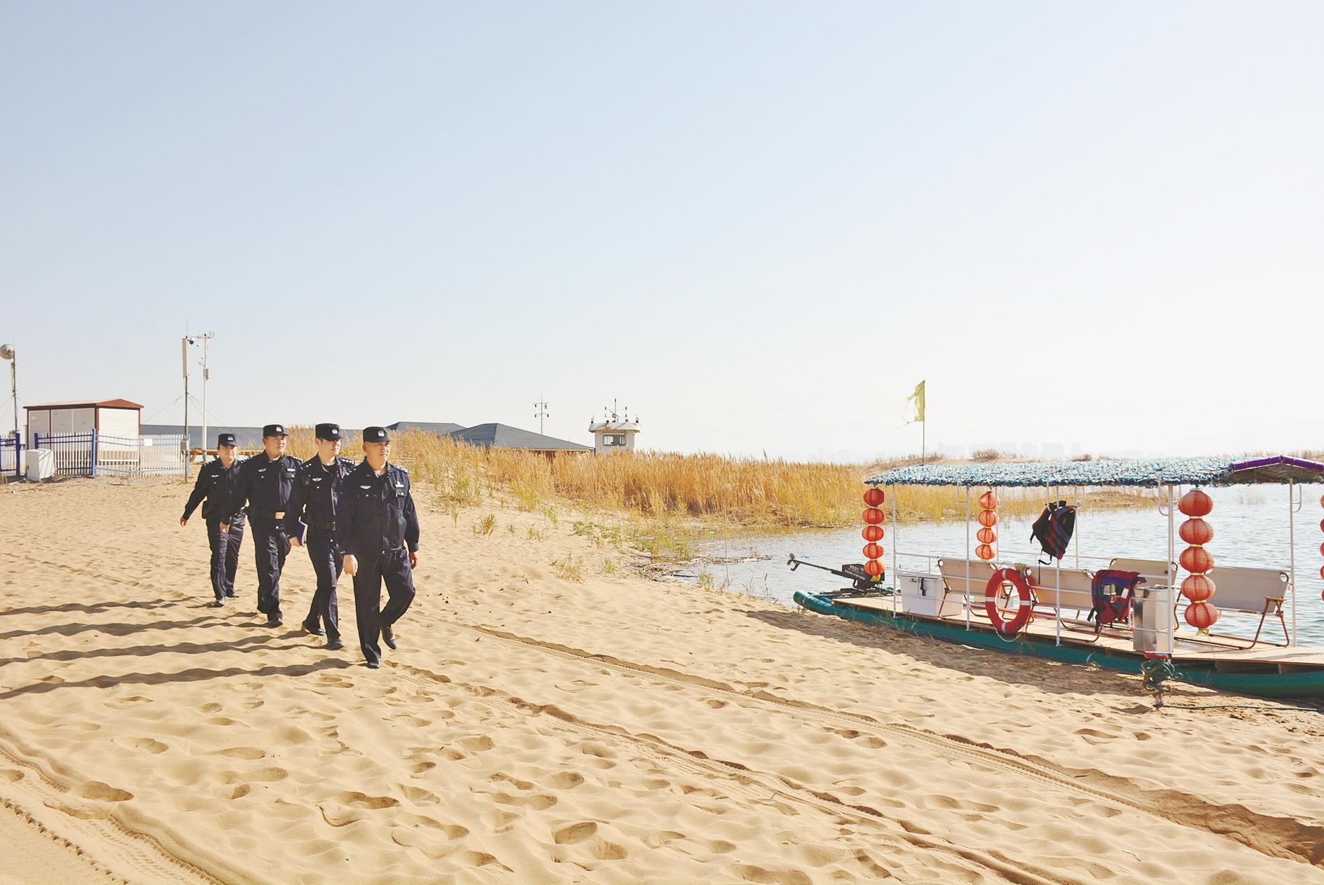 近日,市公安局滨河分局水警大队在乌海湖沙漠营地开展常态化巡逻,打击湖面私捕乱捞现象、劝离私自下水游玩人员、及时救助落水人员,确保旅游高峰期遇群众求助及时到达现场,保护群众生命财产不受损失。 (曹艺 摄)