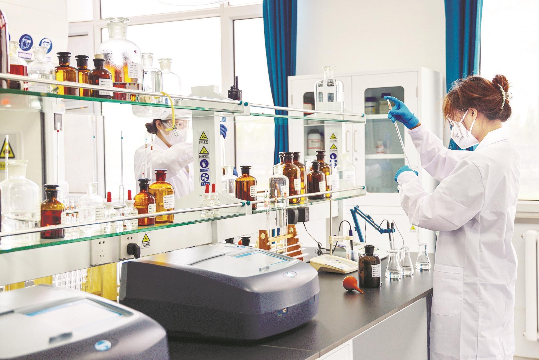 近日,在君正集团可降解材料研发中心,化验室的实验台上井然有序地摆放着分析仪器和量杯、量筒等器具,化验员正有条不紊地检测着产品成分。