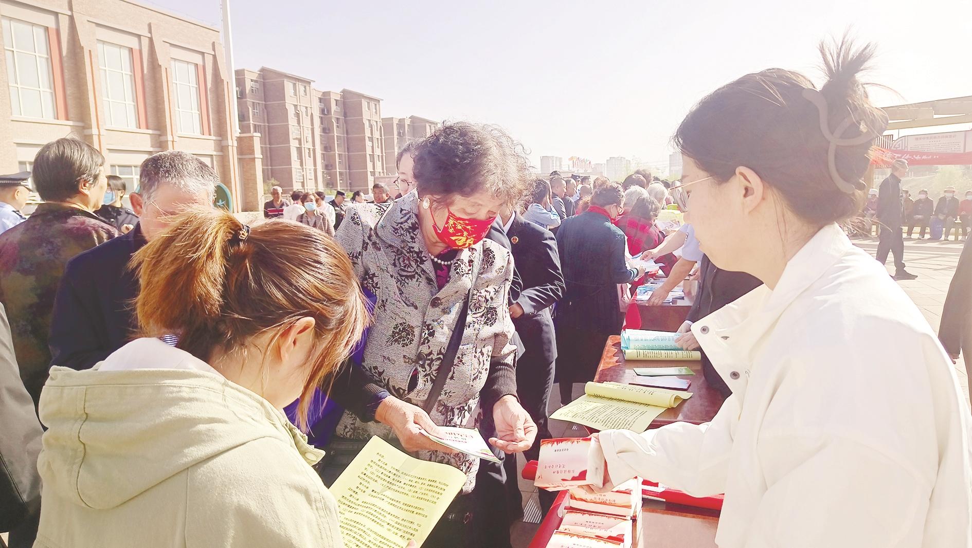 近日,梁家沟街道联合司法所在永昌佳苑社区开展全民国家安全教育日普法宣传活动。街道工作人员为居民发放了宣传册,向居民宣传国家安全法等法律知识,进一步增强辖区居民自觉维护国家安全的责任意识。 (任永霞 摄)