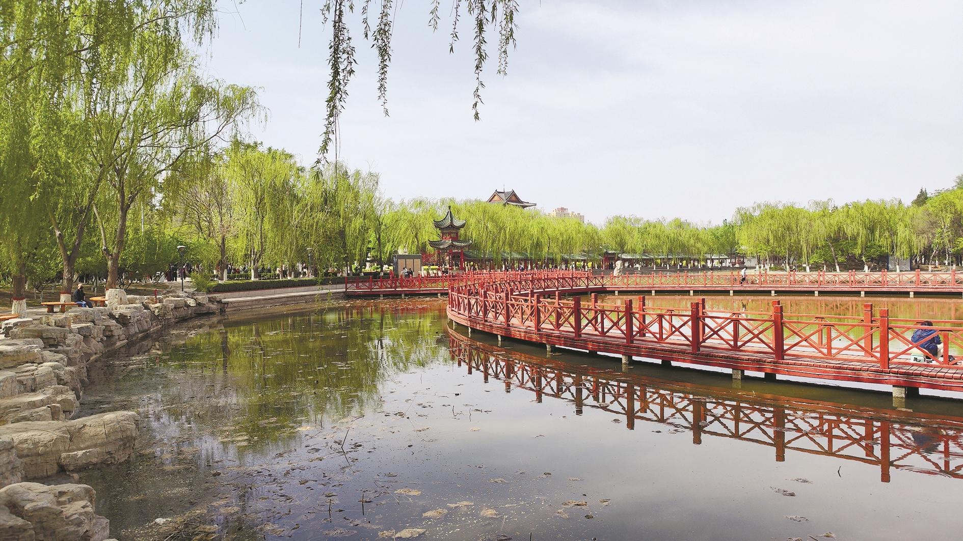 4月是赏春的好时节。在市人民公园,绿柳拂堤,风景如画,为公园增添了一抹靓丽的春色。