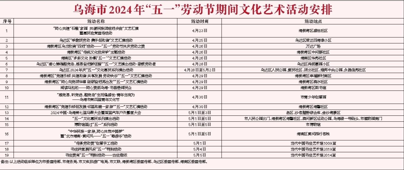 乌海市2024年“五一”劳动节期间文化艺术活动安排
