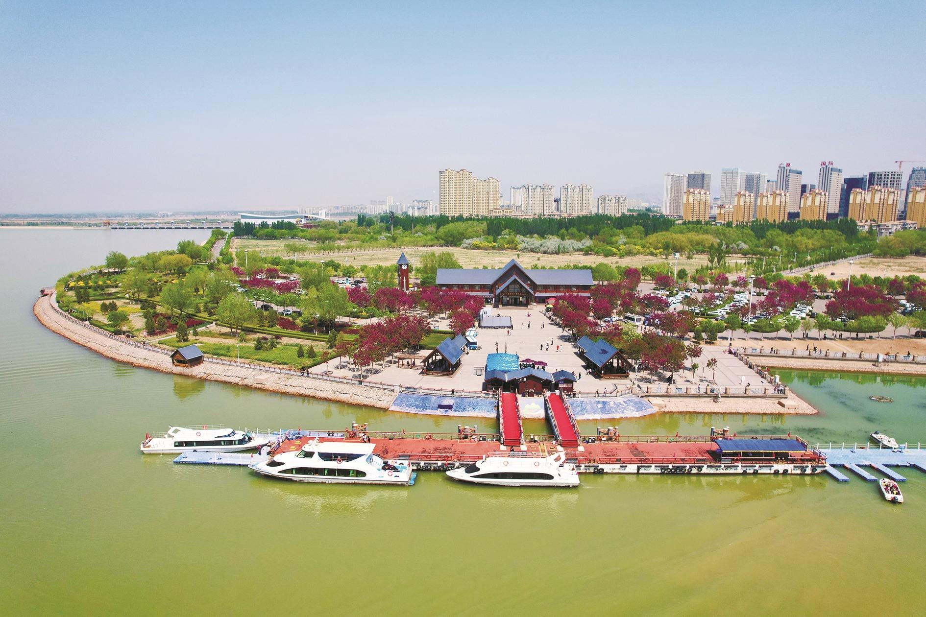 “五一”假期期间,乌海湖以其独特的景色吸引众多游客前来观光度假。漫步在乌海湖景区,蓝天、碧水、绿树交相辉映,山、海、沙、城引人沉迷遐想,各类游乐设施让人畅享美好生活。图为乌海湖一号码头。