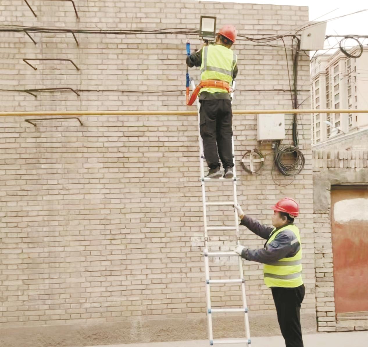 近日,为解决平房区路灯损坏、路灯亮度不够导致居民夜晚出行困难问题,海勃湾区凤凰岭街道和平社区联合包联共建单位中国联通乌海分公司在辖区和平东街北二街坊调查走访,登记需要更换路灯。目前,登记的24盏路灯全部检修更换完毕,昔日的“黑巷子”变成“光明巷”,赢得了居民的称赞。 (张楚研 摄)