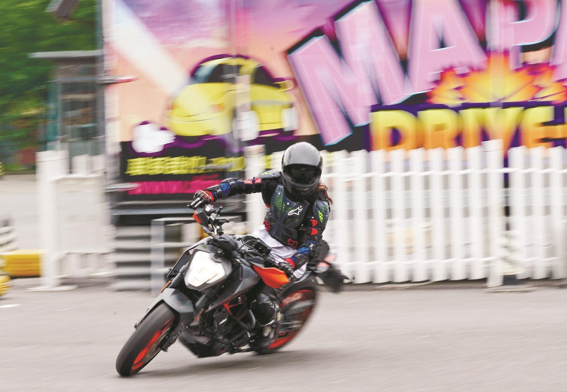 5月4日,摩托爱好者在练习控车技术。