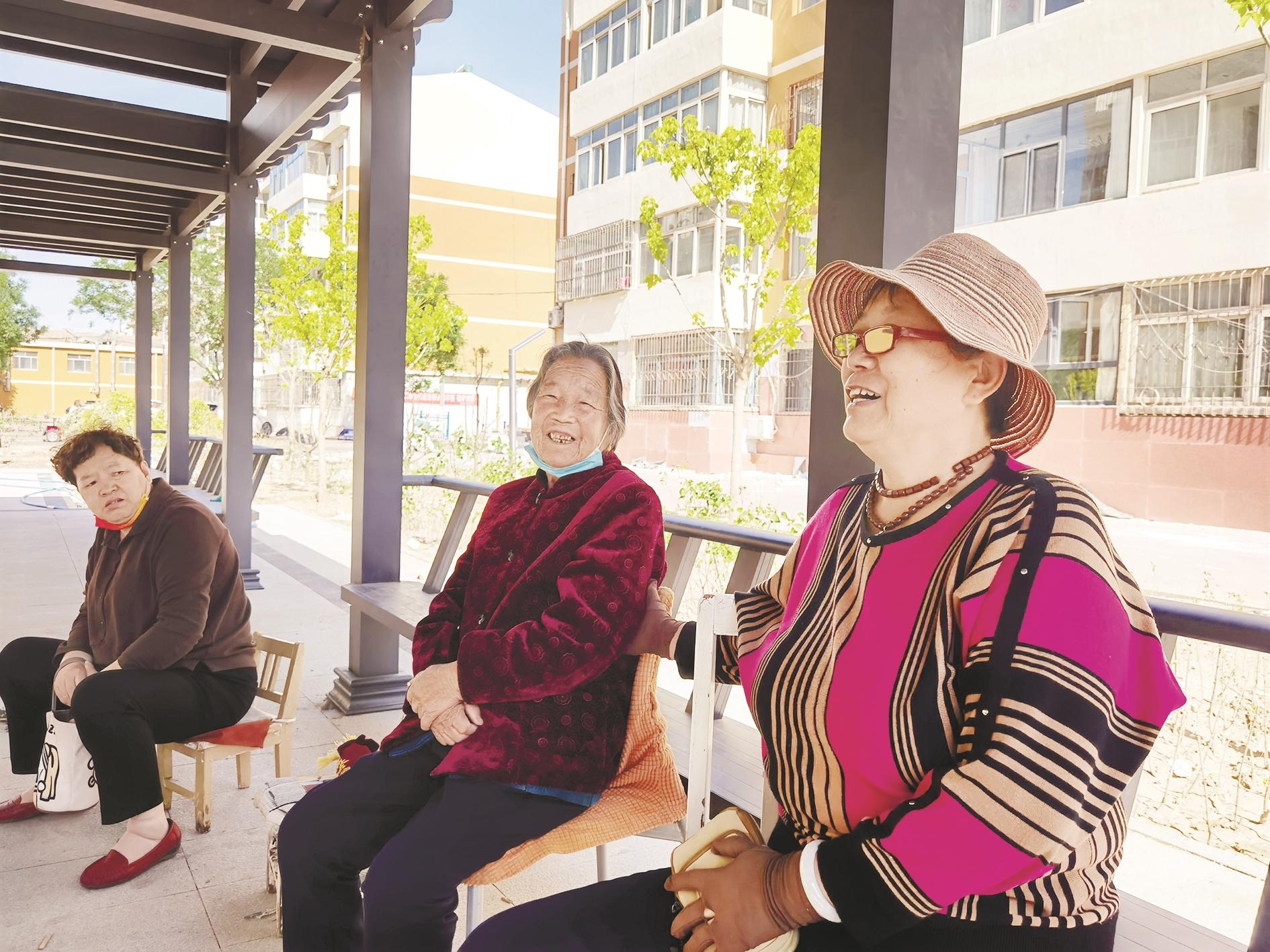 步入海勃湾区站南东小区,新修的柏油路平坦干净、标线清晰,道路两侧的停车区、休息区内红色的面包砖簇新亮眼,住宅楼之间的花坛造型别致、凉亭古色古香,各类崭新的健身器械沿着步道一溜儿排开……和煦的微风下,居民们三五成群,这边打着扑克,那边漫步在步道上。5号楼前,80多岁的闫二莲正和邻居聊着小区可喜的变化。