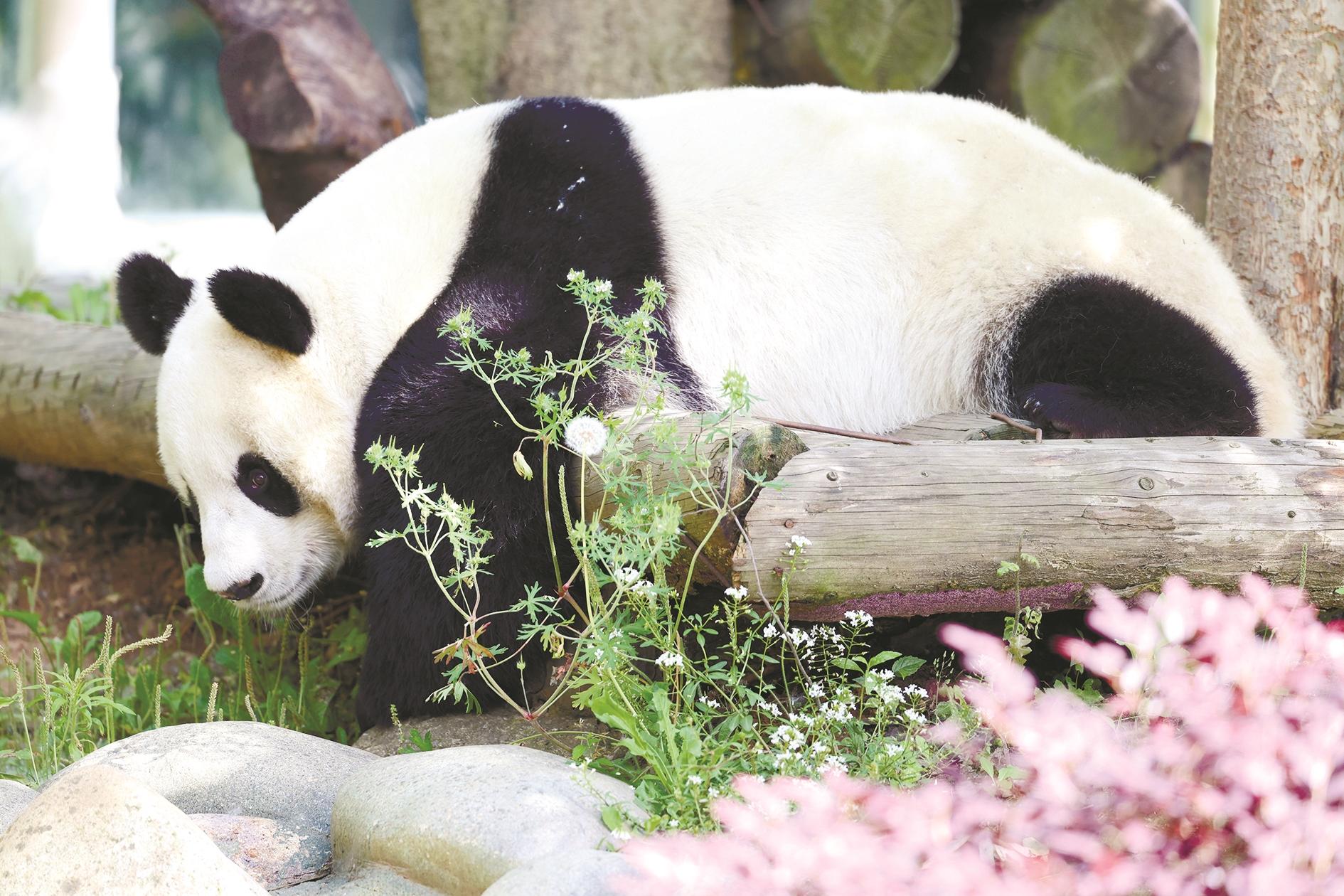 5月12日,在南京汤山紫清湖野生动物世界,大熊猫“福凤”在休息。在南京汤山紫清湖野生动物世界,憨态可掬的大熊猫乐享初夏阳光,吸引大批“熊猫粉”前来看望。
