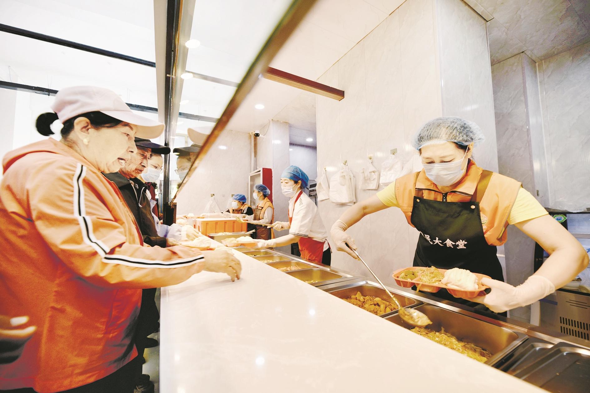 为让老年人在家门口实现“老有所养”,近年来,我市从“一顿热乎饭”入手,先后构建起“中心厨房+助餐点+暖心为老餐厅”的助餐服务网络,实实在在让老年人在家门口就能吃上热乎饭、暖心饭。图为近日,乌达区富强益民共享惠民大食堂内,老人们排队取餐。