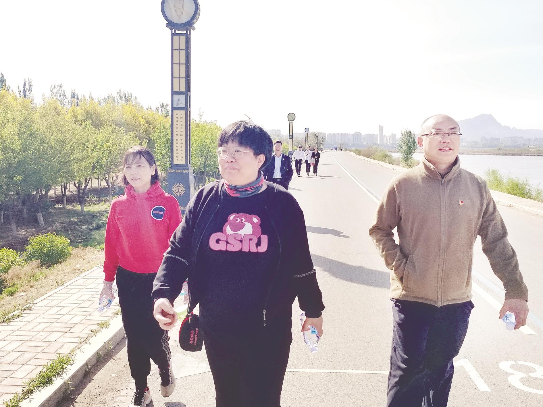 近日,中行乌海分行与海勃湾区滨河街道白楼社区联合开展“感党恩 听党话 跟党走——沐春风 一路歌声”健步走主题党日活动。 (侯引龙 摄)