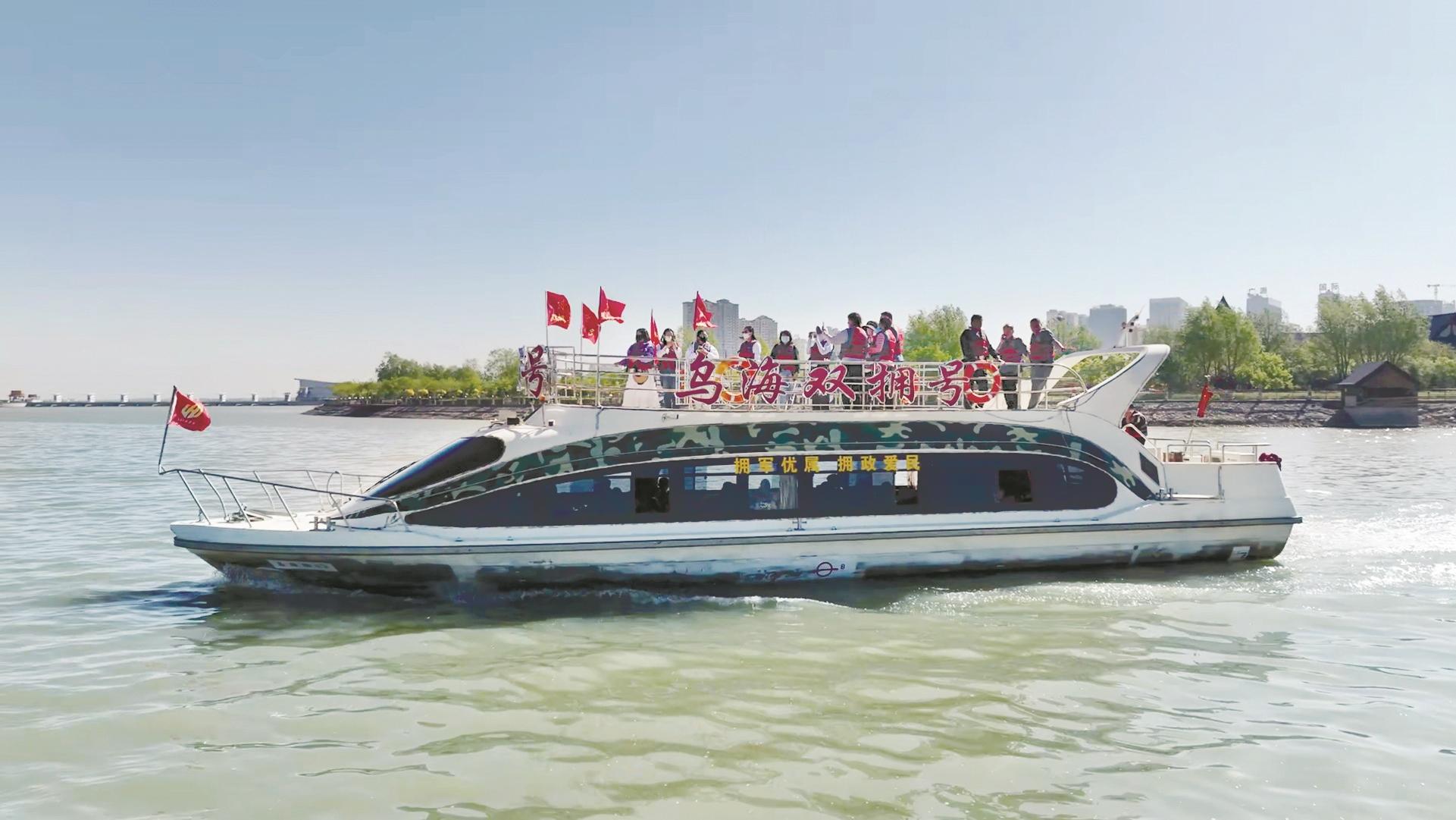 近日,乌海“双拥号”游船在乌海湖一号码头举行启航仪式。乌海“双拥号”游船是市退役军人事务局打造的流动双拥宣传阵地。形象的配图,有力的口号,让广大市民在日常乘船中近距离了解双拥工作,增强国防意识。