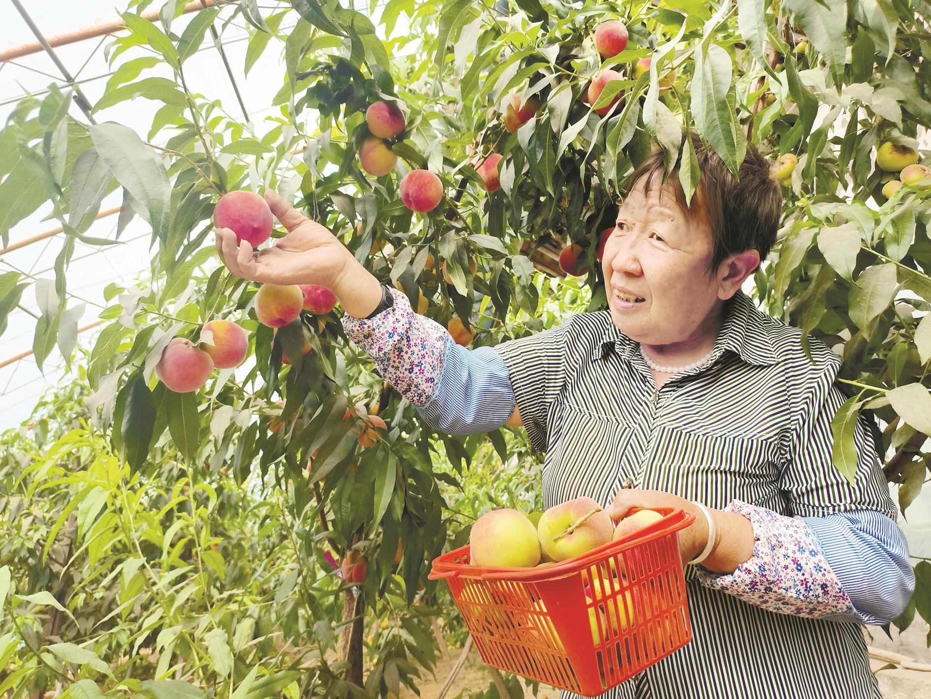 今年以来,我市持续引导广大种植户开展庭院种植、养殖,推动庭院经济成为发展特色产业、带动休闲农业、拉动乡村旅游的新业态。图为海勃湾区千里山镇团结新村种植户在庭院种植的桃子成熟上市,种植户根据订单采摘鲜桃。