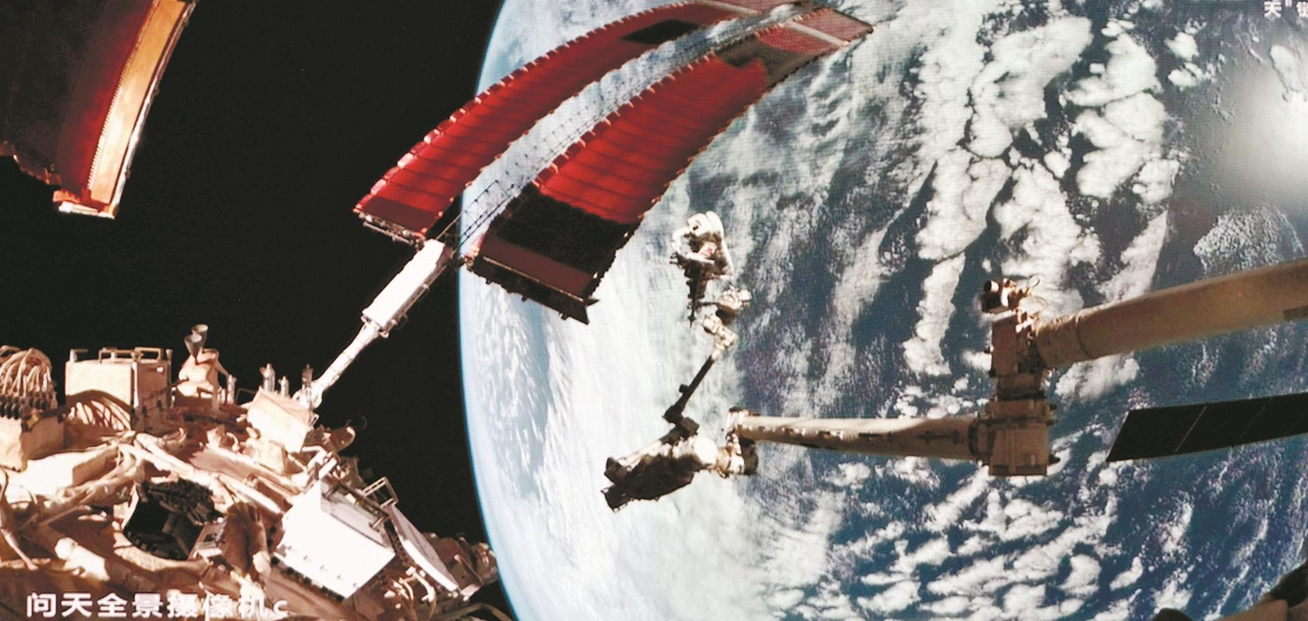 5月28日在北京航天飞行控制中心拍摄的神舟十八号航天员叶光富在空间站机械臂辅助下进行舱外作业的画面。当日,神舟十八号乘组航天员叶光富、李聪、李广苏密切协同,在空间站机械臂和地面科研人员的配合支持下,完成了空间站空间碎片防护装置安装、舱外设备设施巡检等任务。航天员叶光富、李广苏已安全返回问天实验舱,出舱活动取得圆满成功。航天员叶光富再度漫步太空,航天员李广苏首次执行出舱活动任务。