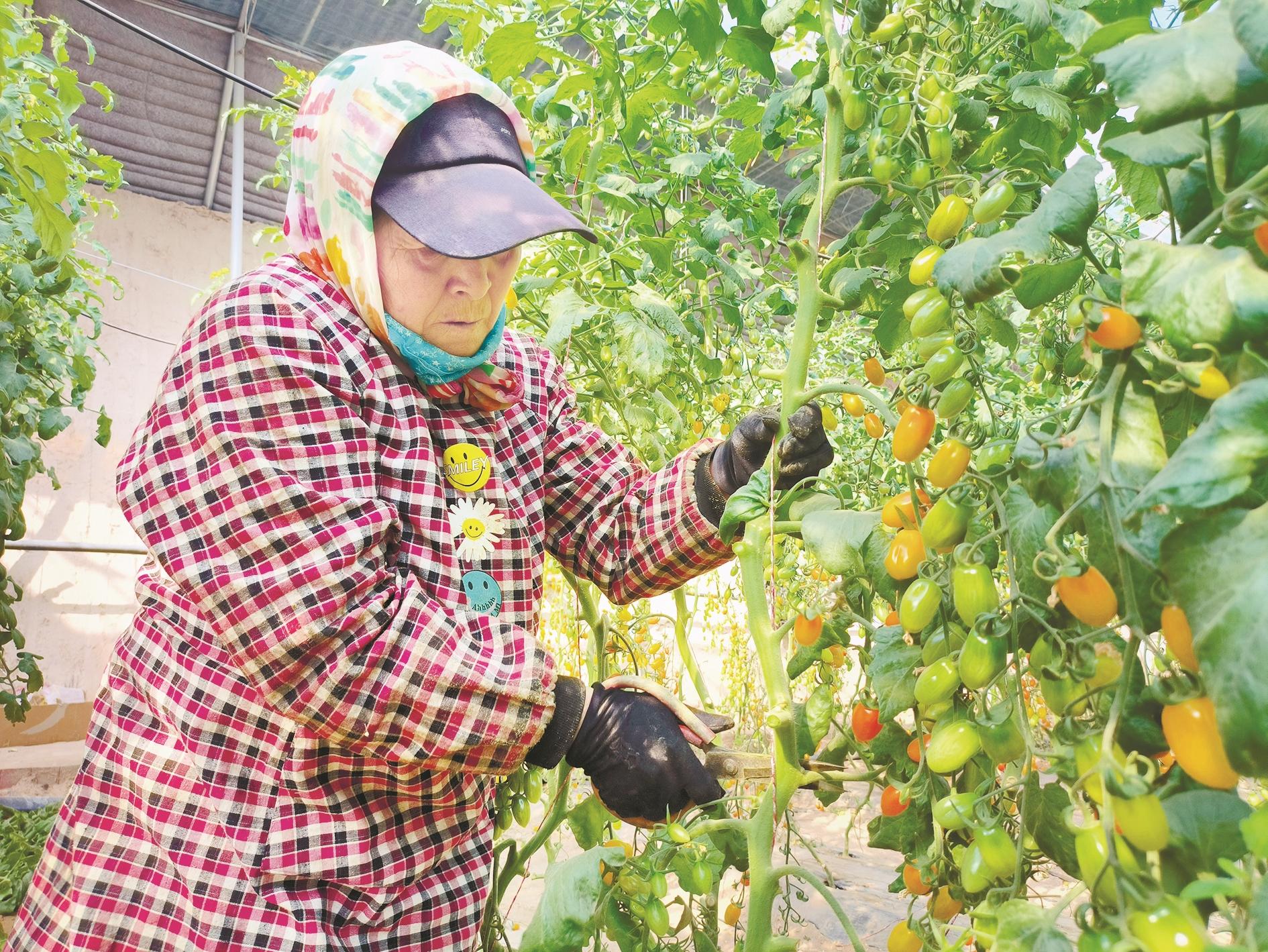 正值我市本地西红柿上市热销期,种植户集中开展整枝、修剪等田间管理,提高通风透光性,增强叶片的光合作用,促进果实发育,实现增产增收。图为海南区拉僧庙镇曙光村种植户修剪西红柿侧枝。 (路静 摄)