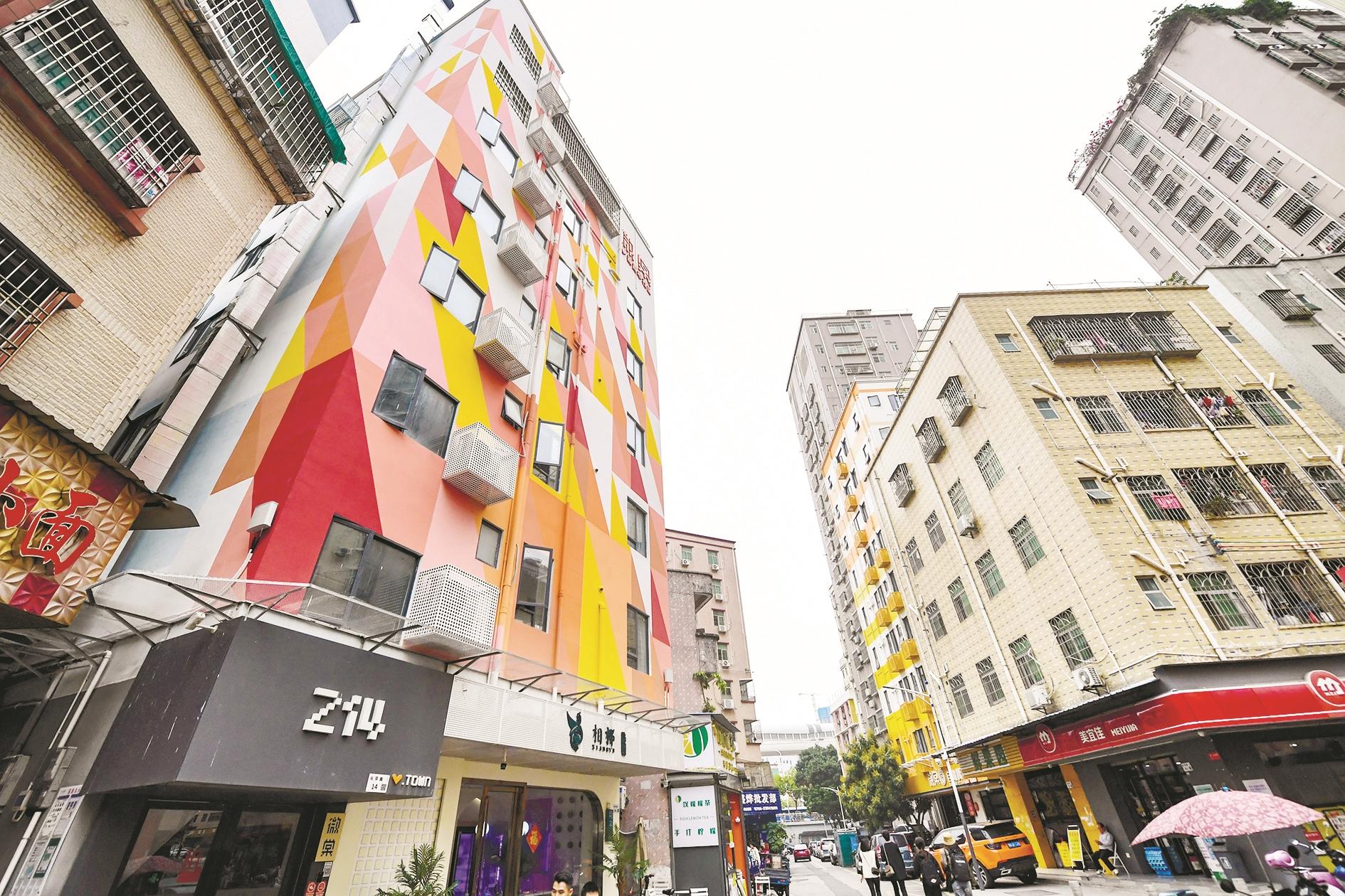 2023年4月2日在深圳市龙华区元芬村拍摄的改造后的青年公寓外立面(左)。近年来,深圳持续推进城中村住房规模化品质化改造提升,打造了元芬村等新型宜居人文社区。 新华社记者 毛思倩 摄