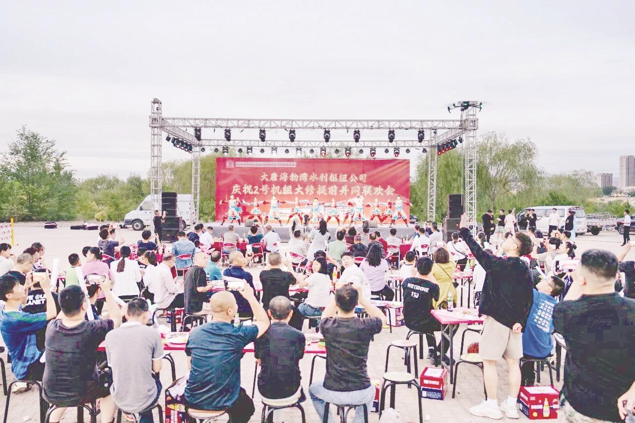 近日,乌海乌兰牧骑到内蒙古大唐国际海勃湾水利枢纽开发有限公司送上精彩的文艺演出,助力企业庆祝2号机组大修提前并网发电。演出现场,舞蹈、歌曲、马头琴独奏等形式多样的节目深受观众喜爱。 (靳婧 摄)
