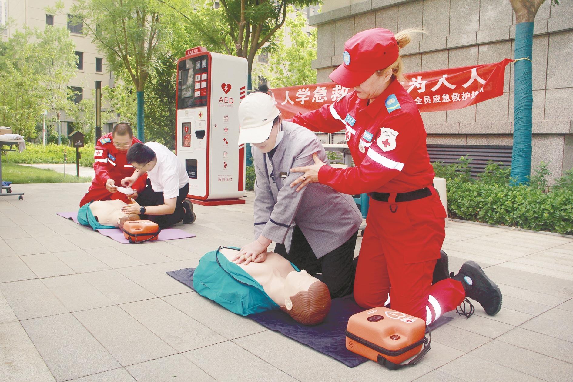 5月29日,海勃湾区红十字会讲师走进海勃湾区金田·第三城小区开展“人人学急救 急救为人人”AED使用及应急救护培训。 (段维娜 摄)