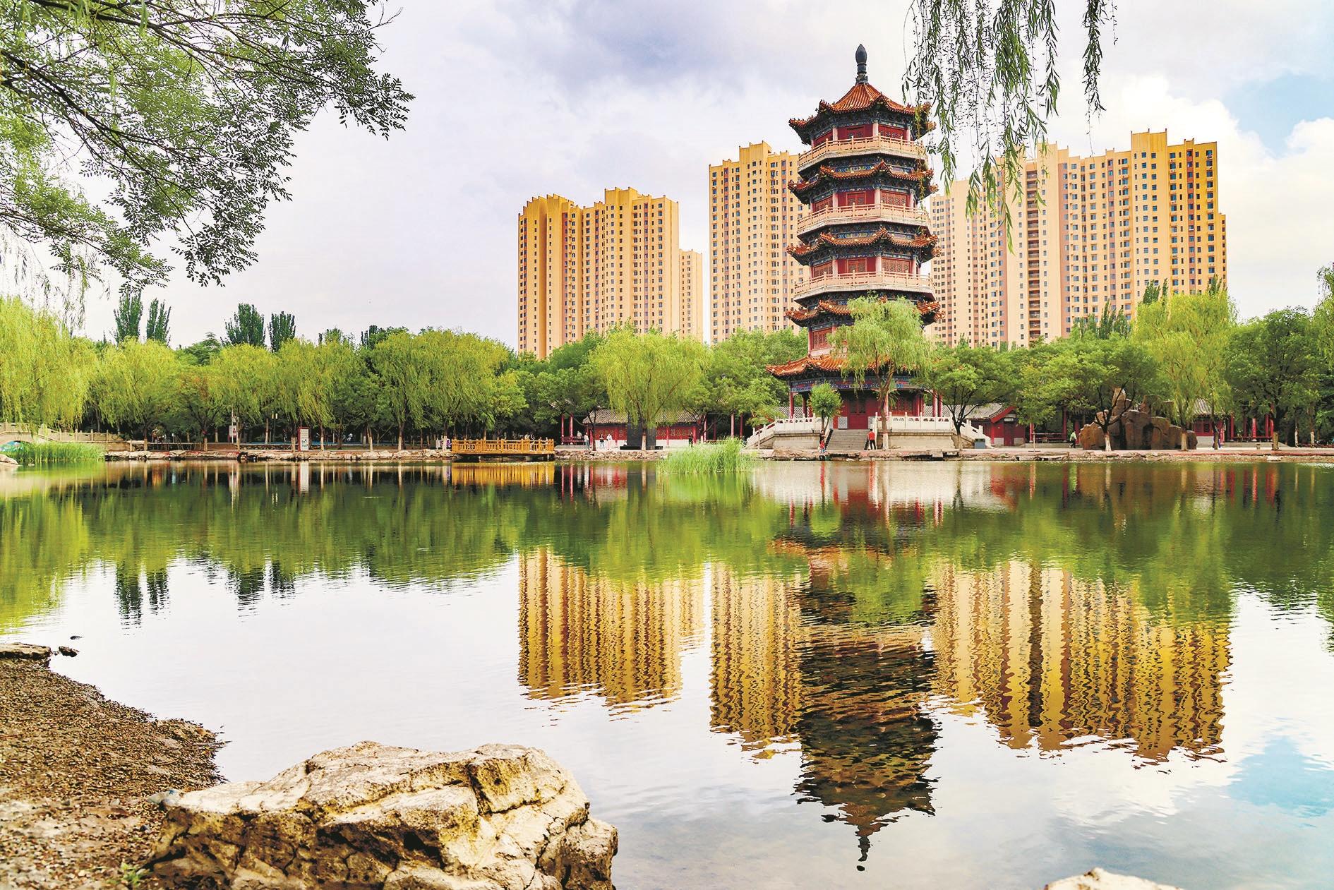 雨过天晴,位于海勃湾区的青山翰墨园绿意盎然,蓝天、白云与绿树、湖水交相辉映,构成了一幅和谐美丽的自然生态画卷。 近年来,我市高质量打造精美宜居城市,建设了一批主题公园、口袋公园,为市民愉悦身心、休憩健身提供了更多好去处。(高瑞鹏 摄)