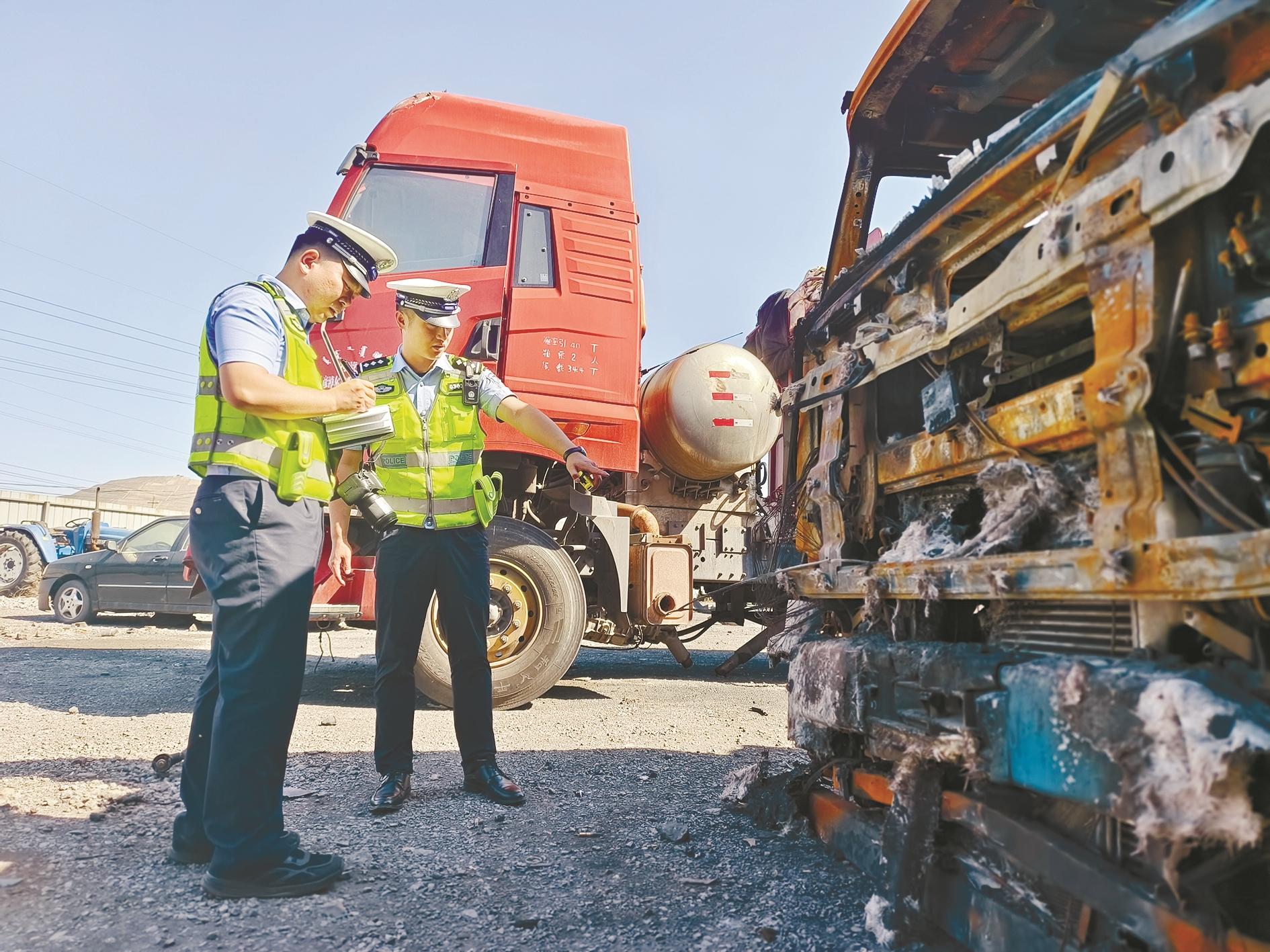 “在事故现场,我们根据以往处理交通事故的经验发现2处疑点:首先,两车均为燃油车辆,其碰撞位置损伤较轻,而这种撞击力度和撞击位置,起火的可能性较小。其次,两车驾驶人均未受伤,如他们当时发现车辆起火,一般能够及时扑灭,车辆不会出现如此大面积烧毁情况。”市公安局海南交管大队事故中队民警孟佳龙说。