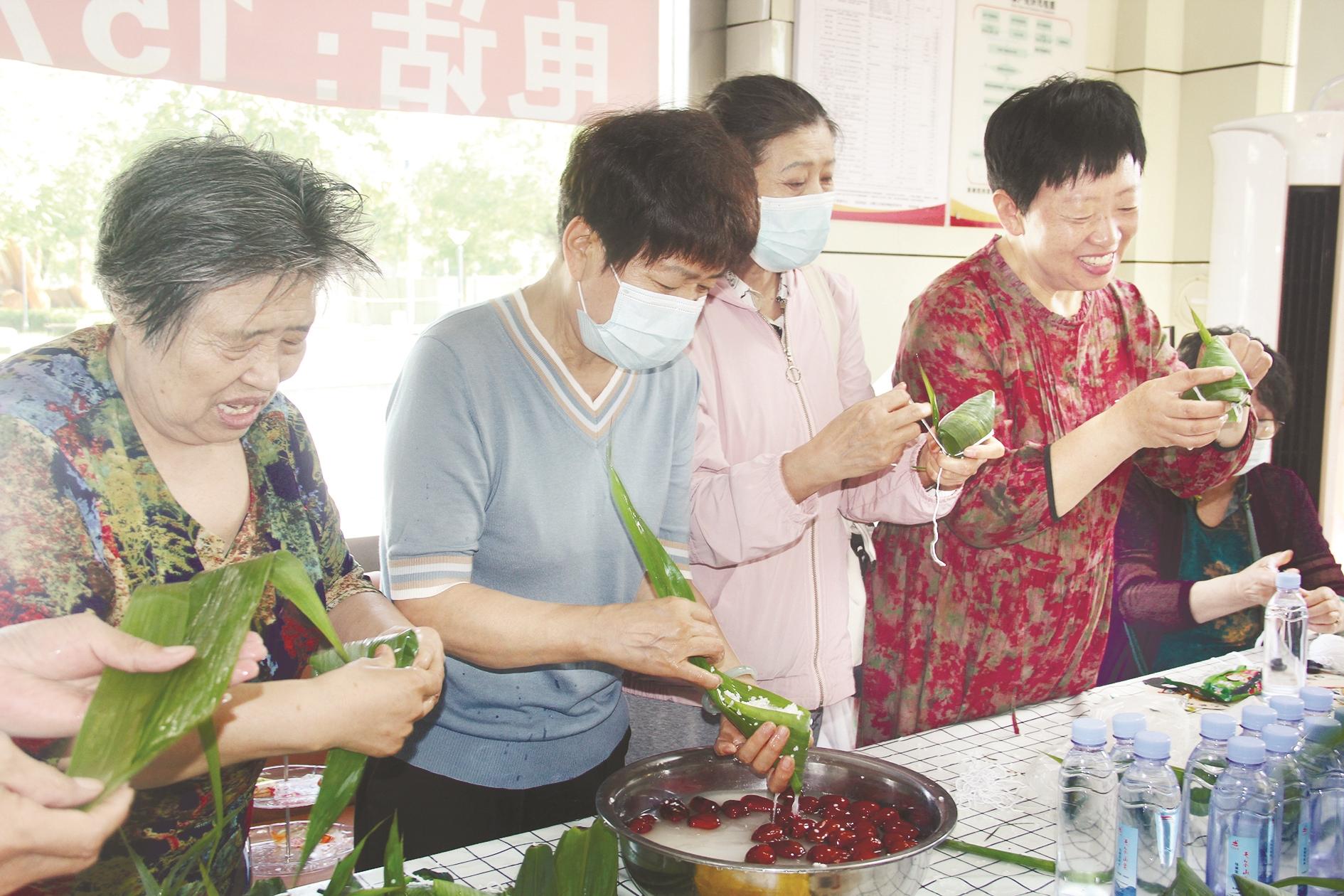 6月5日,乌海银行西湖支行开展了端午节包粽子活动。 (陈洋 摄)