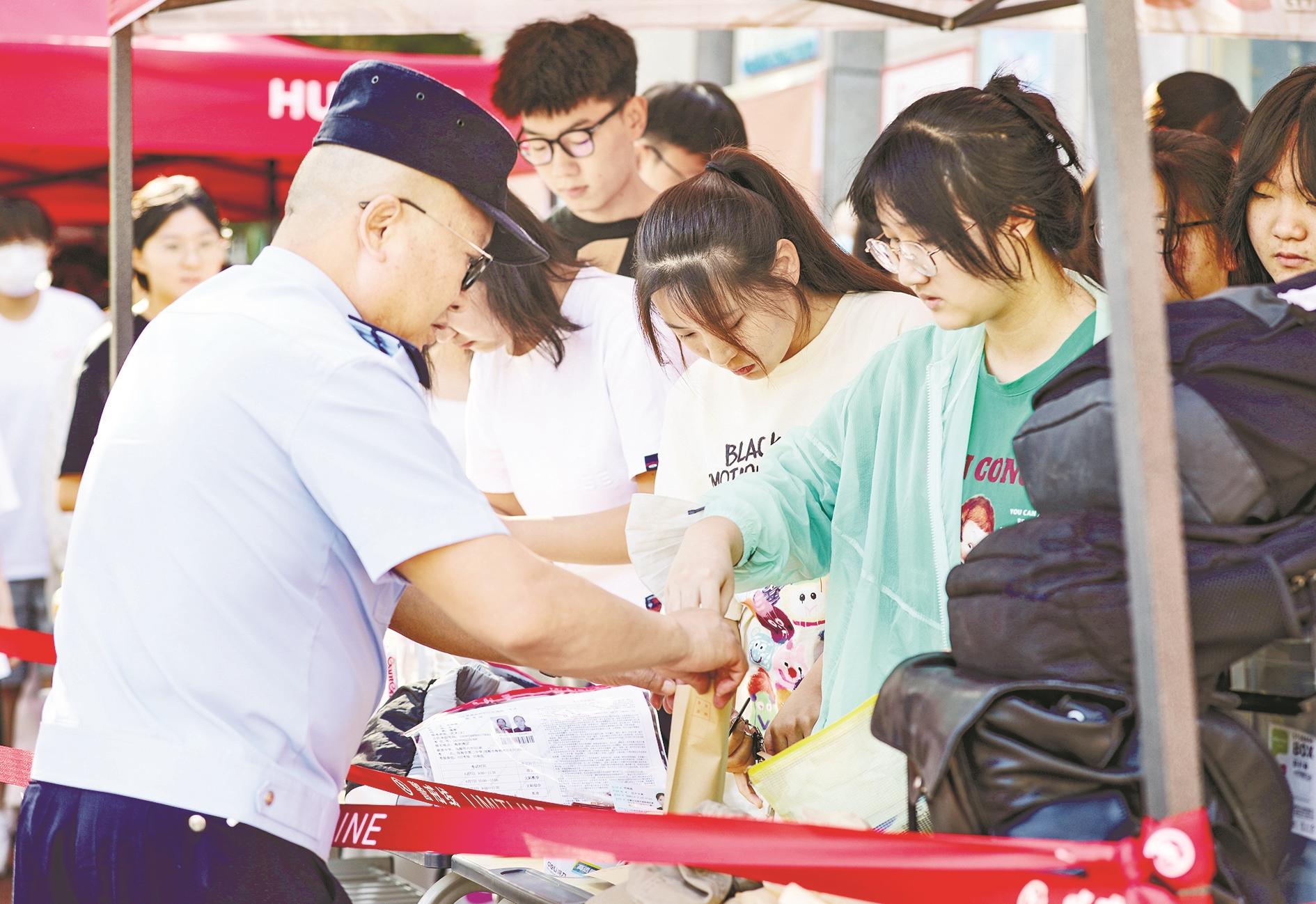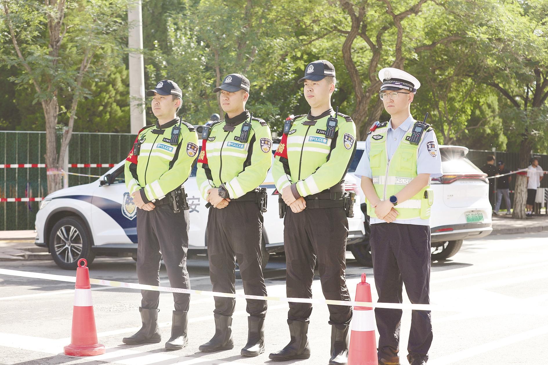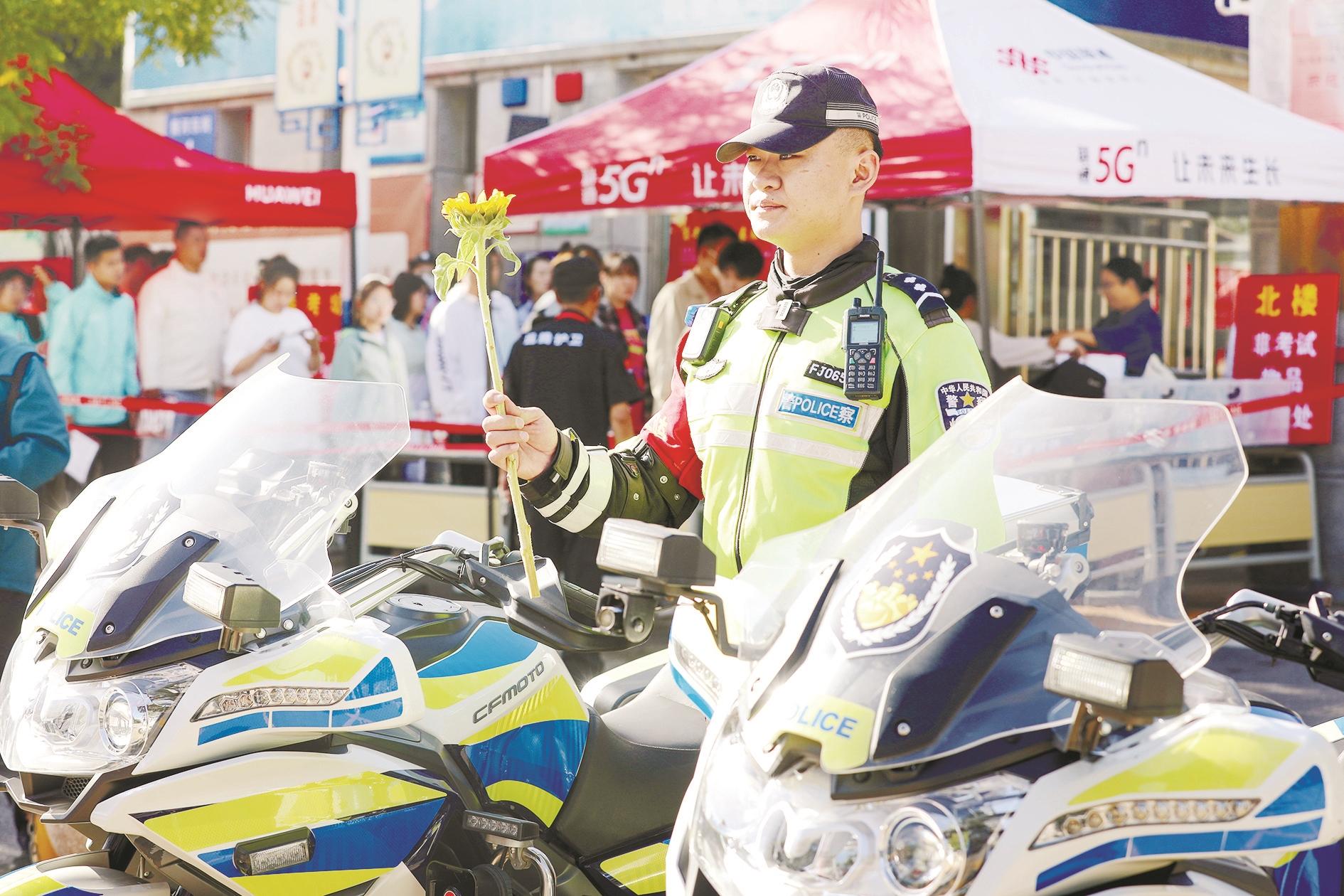 警察为高考学子保驾护航。(高瑞鹏 摄)