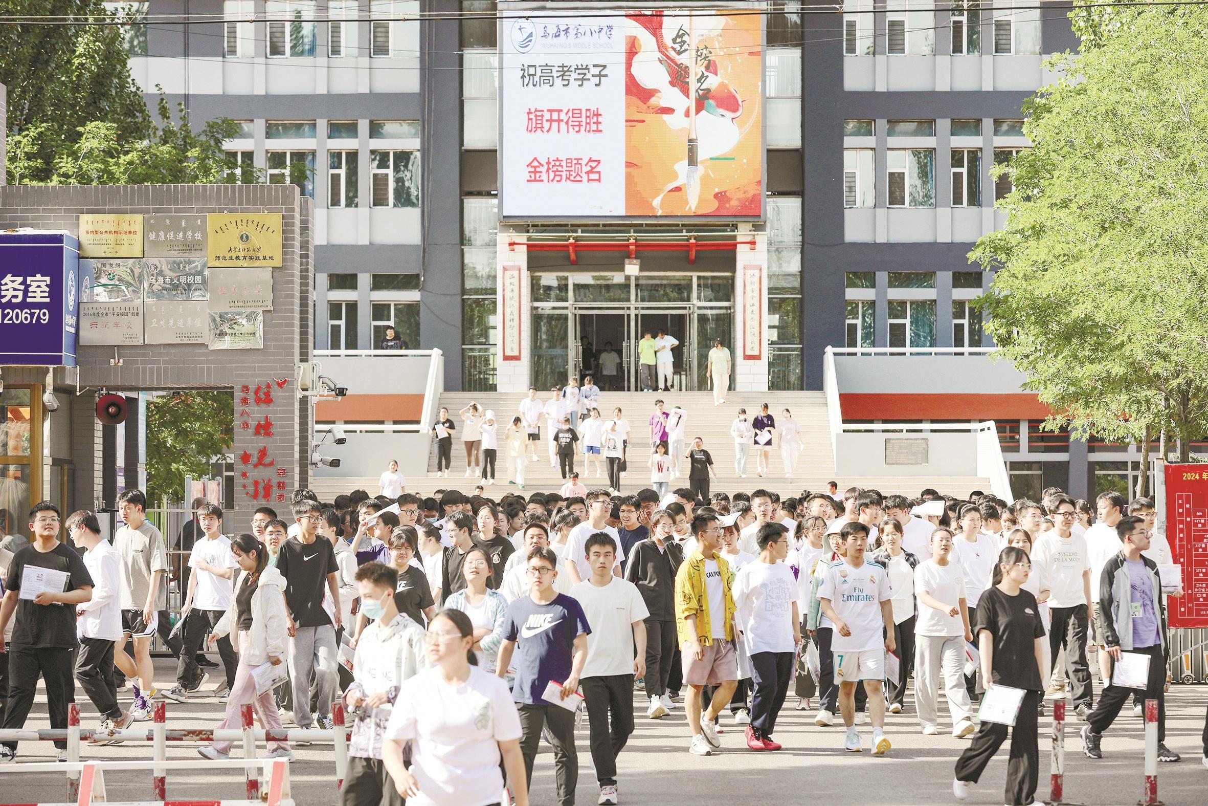 乌海市第八中学考点,考生有序走出考场。(高瑞鹏 摄)