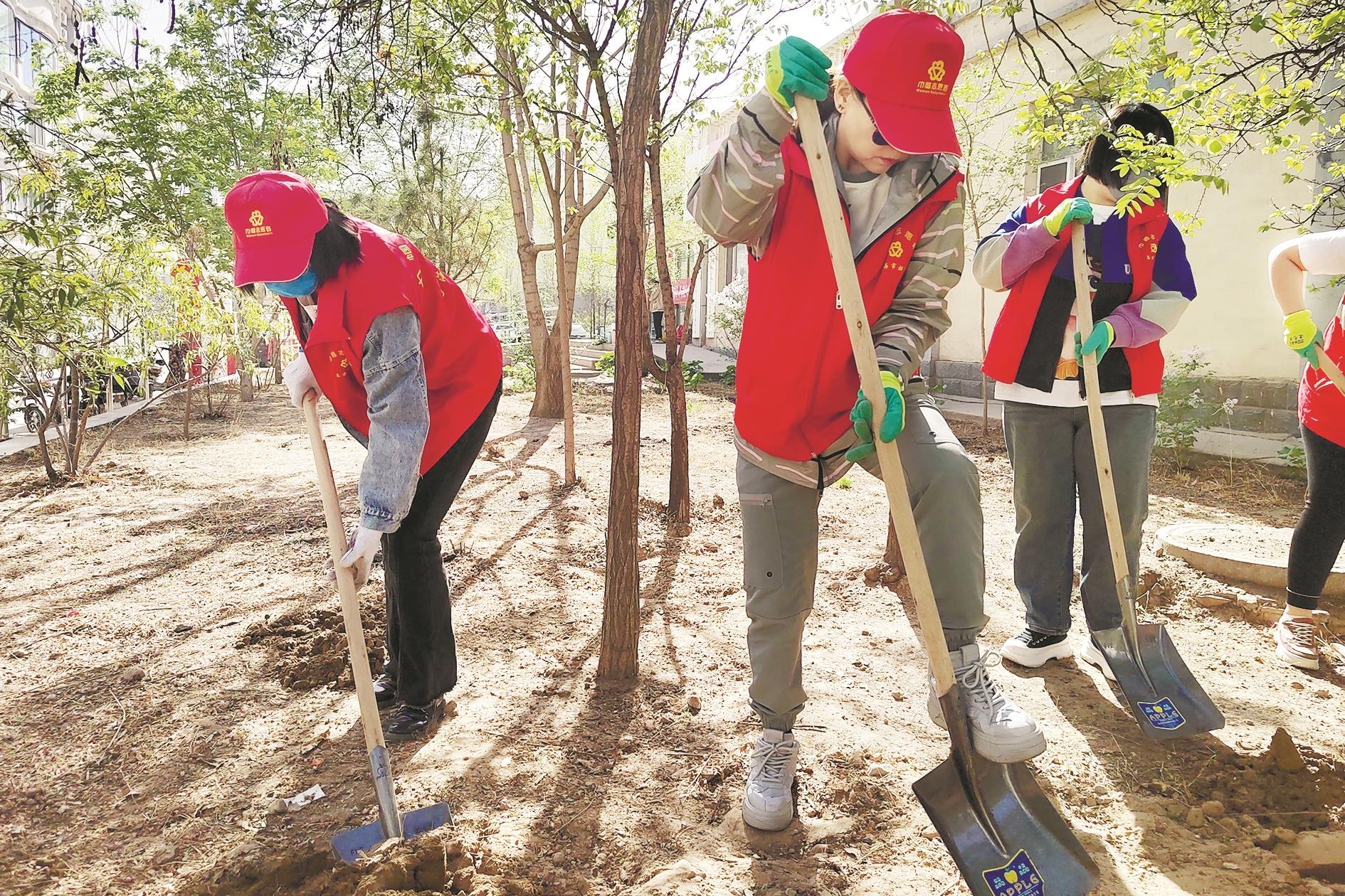 近日,海勃湾区新华街道新海社区组织开展了“‘植’此青绿正当时”志愿服务活动。志愿者默契配合,按照分工进行挥锹铲土、扶苗填坑、培土浇水等工作,共种下20余棵刺玫苗。(黄建飞 摄)