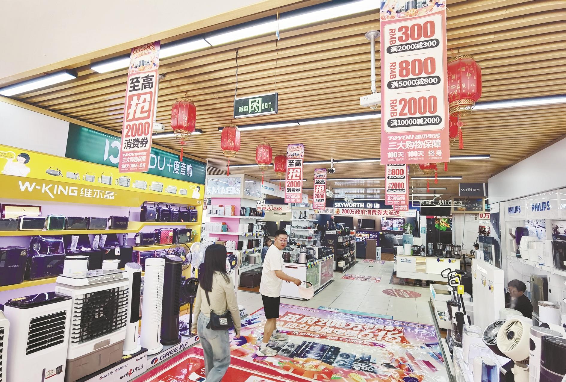 走访中,汽车4S店的显眼位置均张贴着汽车“以旧换新”的宣传页,电器商场继“以旧换新”活动后“200万元政府消费券大派送”正在火热开展,吸引了不少有意向的市民了解、选购。