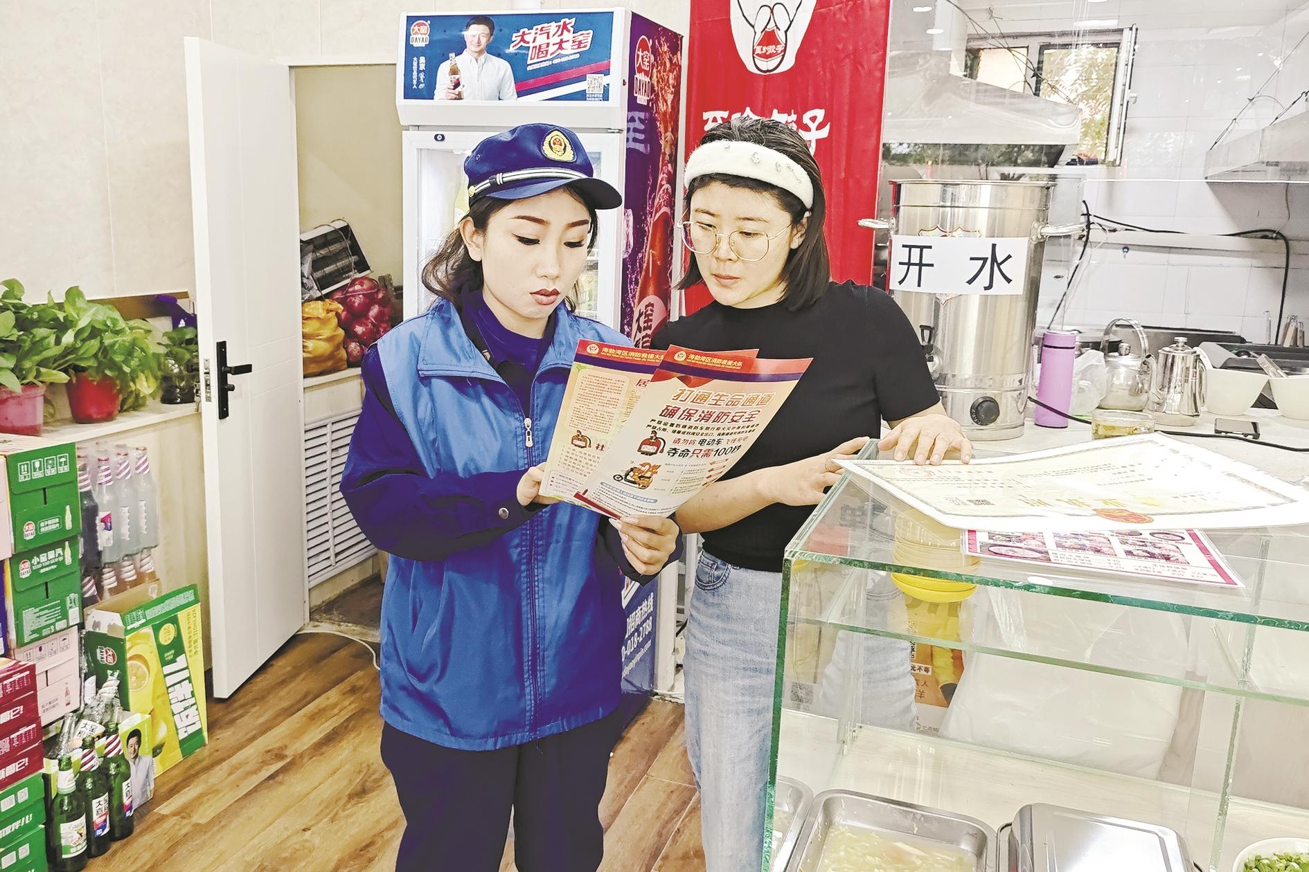 近日,海勃湾区消防救援大队开展消防安全宣传活动。消防队员到辖区“九小场所”,通过发放资料、现场讲解等形式,宣传普及用火用电用气安全、火灾预防、应急疏散等知识。 (黄建飞 摄)