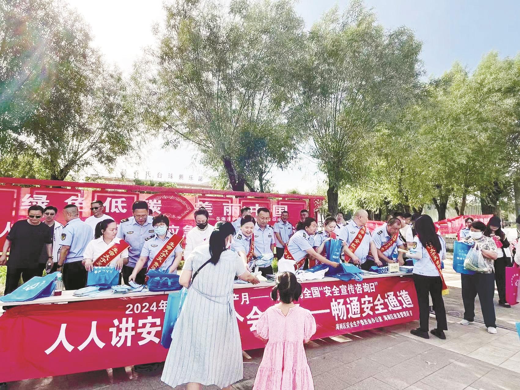近日,2024年安全生产月咨询日宣传活动在海南区人民广场举行,海南区的17个部门、单位以及5家重点企业参加。活动采取摆放展板宣传、发放资料宣传、提供现场咨询等形式,向市民宣传讲解应急逃生避险措施、消防安全及交通安全等知识,增强市民安全意识和事故防范能力。 (马蓉 摄)