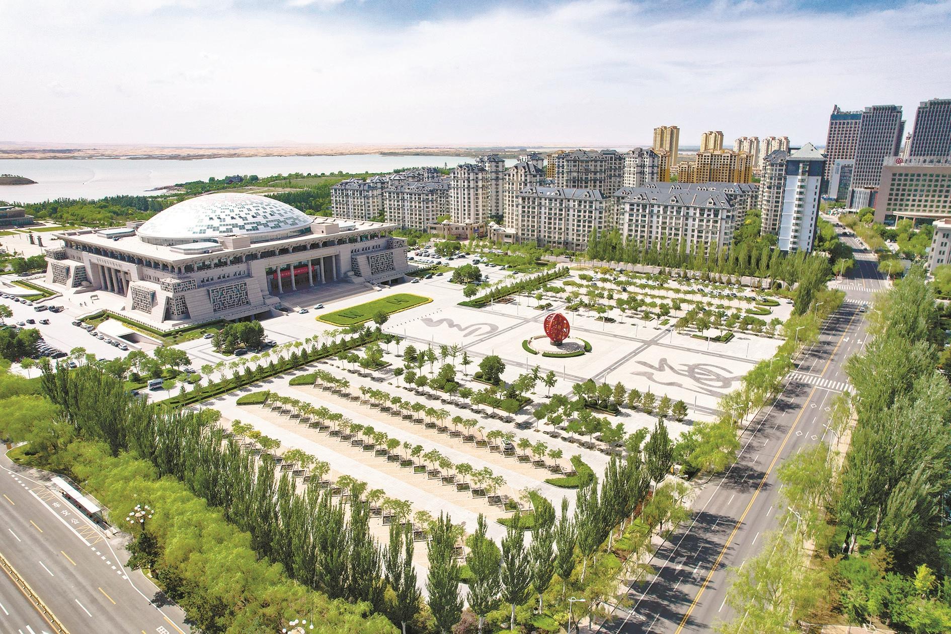 行走在城市中,错落有致的绿化带、姹紫嫣红的花卉丛,城市处处是美景。图为滨河新区一景。 (高瑞鹏 摄)
