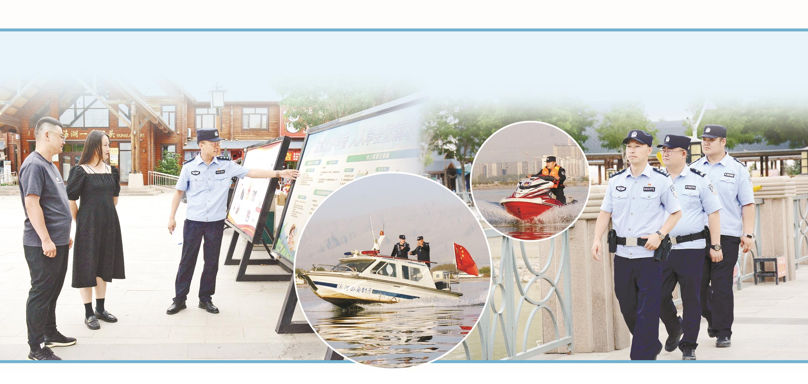 除岸上巡逻外,市公安局滨河分局水警大队民警、辅警高频次驾驶巡逻艇、摩托艇开展水上巡逻,做好乌海湖沙漠营地治安管理工作,并在每年旅游高峰期24小时待命,全力守护游客安全。