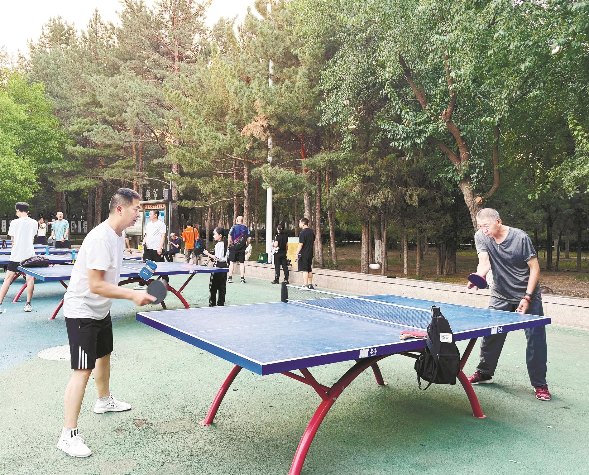 “身体前移、手腕发力、回击旋球……”在市人民公园的乒乓球场地上,13岁的田浩林小朋友正与球友切磋。“我儿子每天放学后都会约两个好朋友来公园打会儿乒乓球,一是为了放松身心,二是为了强身健体。而且,我家就在这附近,孩子打一会儿球回家正好吃饭,很方便。”田浩林的母亲吴彩霞说。