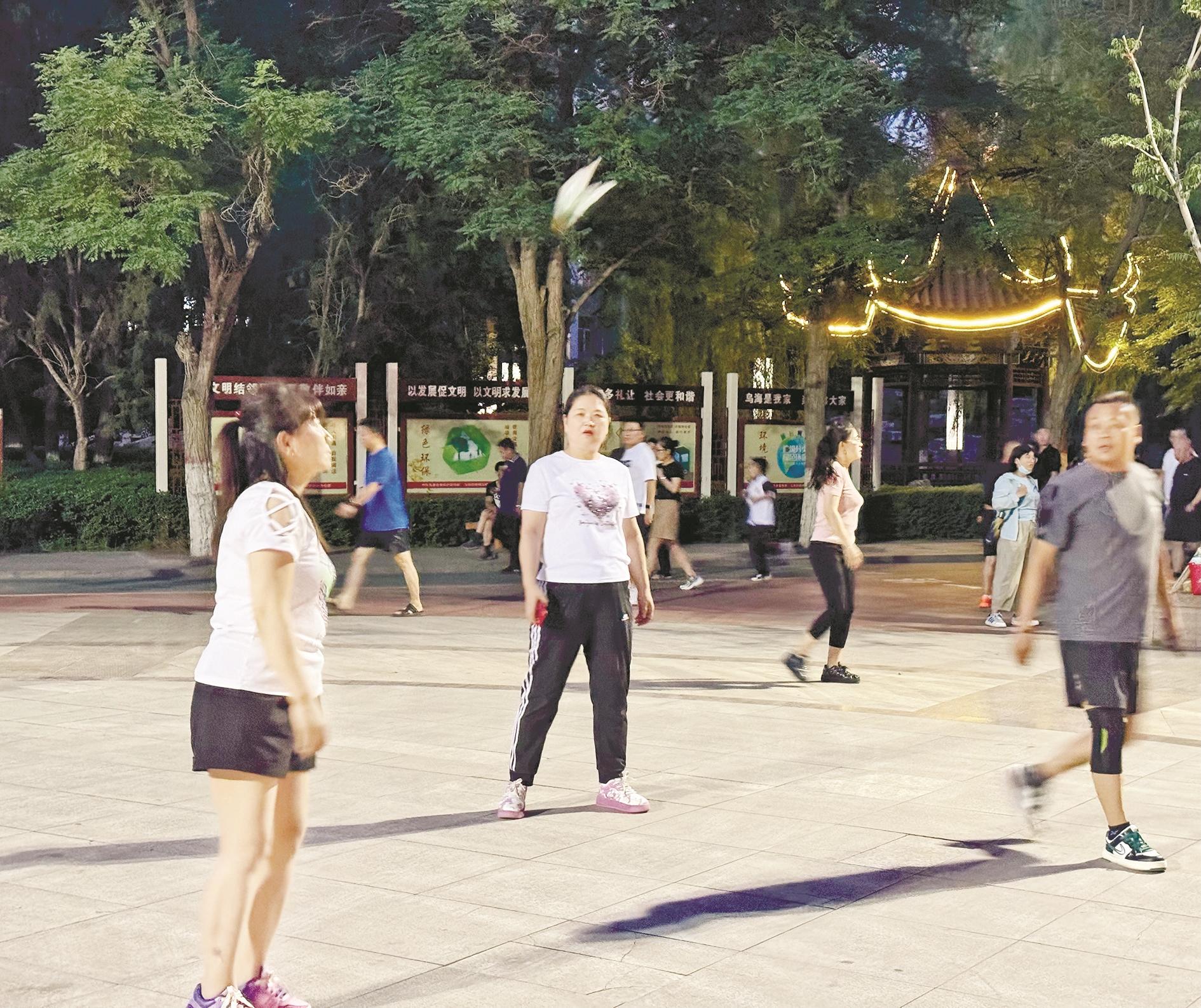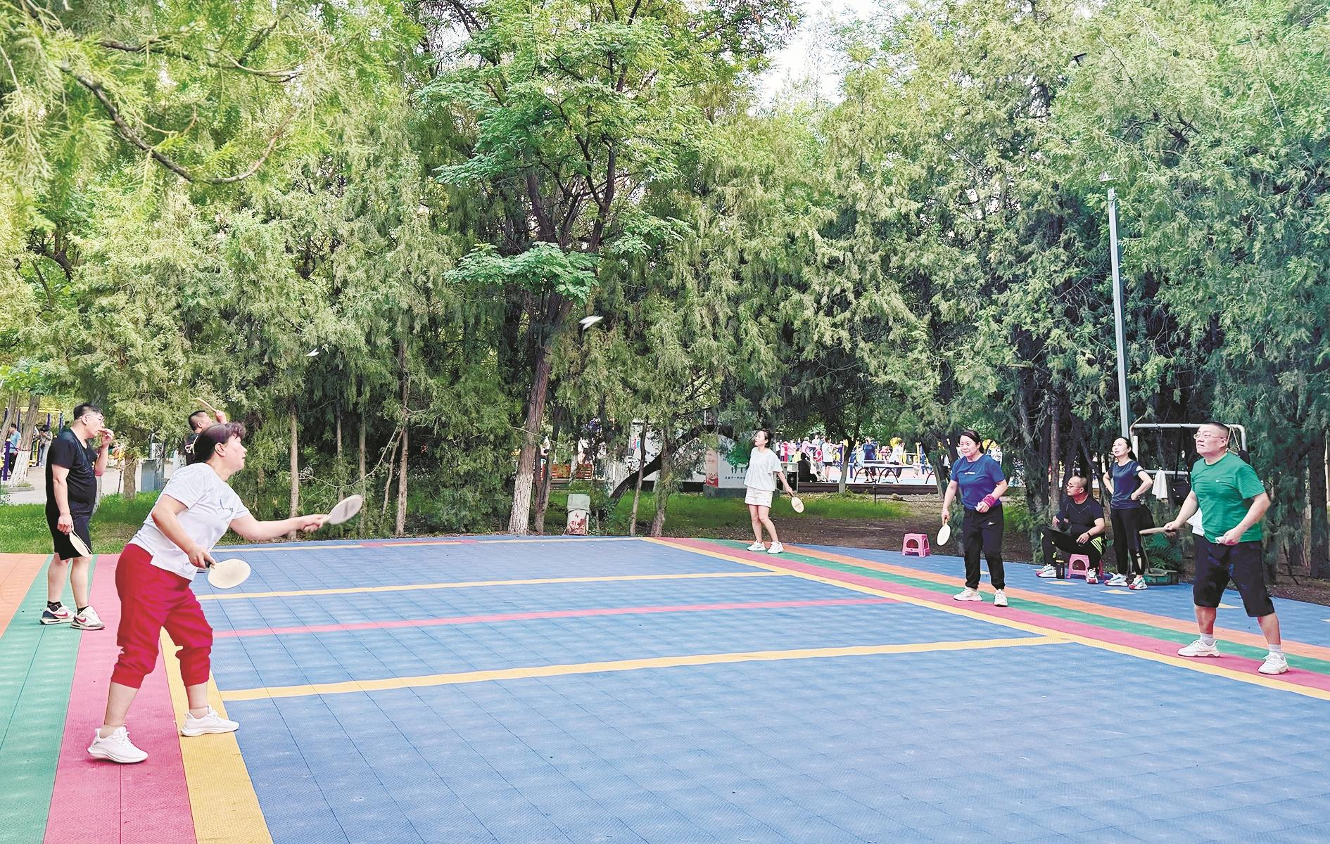 “今儿天气不错,老地方走起来!”市民柳青梅在微信群里发完信息,十几分钟后,大伙儿就聚齐了。柳青梅说的“老地方”是乌珠穆主题公园。“一开始我们在小区健步走,但场地属实不够大,也怕扰民。这几年,公园不断改造,不仅地方宽敞,景色也好。在这儿锻炼身体,心情美美哒!”从健步走到打羽毛球再到踢毽子,柳青梅几乎每天都在公园与姐妹们乐享运动时光。