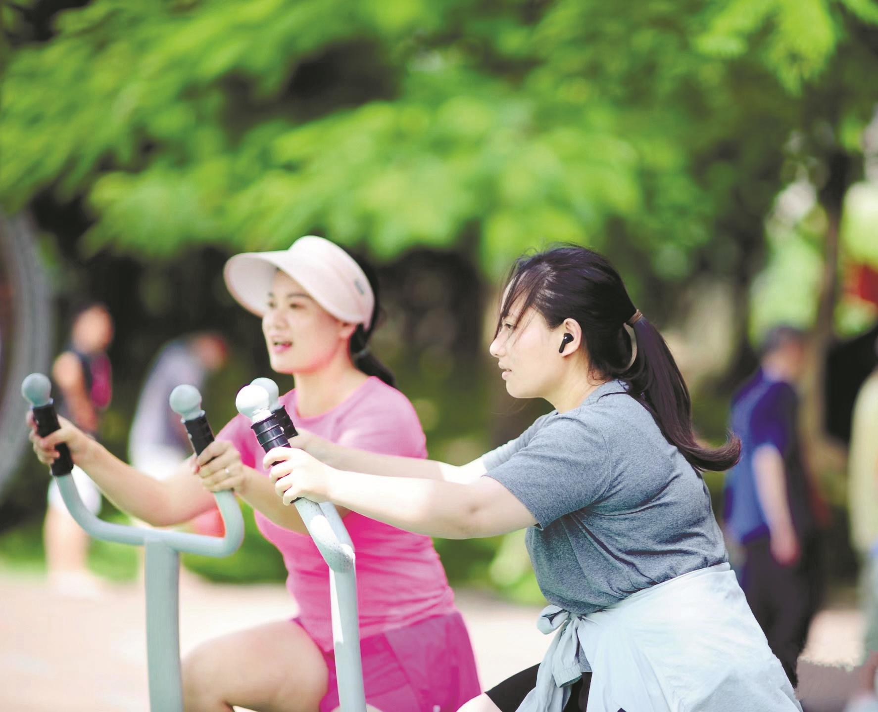 6月22日,在市人民公园健身的人们纷纷说着公园运动的便利与好处。