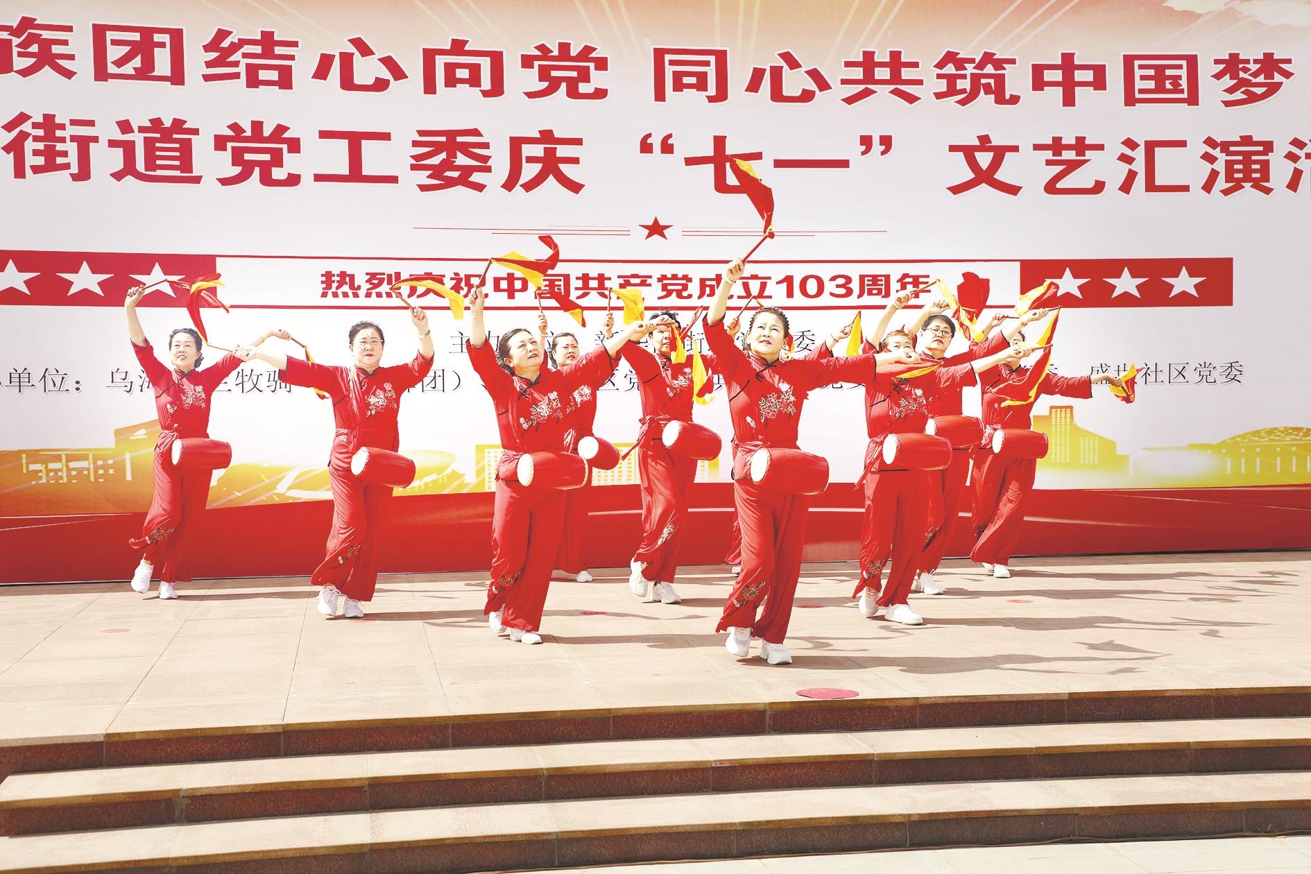 6月28日,由海勃湾区新华西街道党工委主办的新华西街道庆“七一”文艺汇演活动在辖区内红色文化主题公园举办。 活动中,街道各社区干部职工、辖区社团文艺组织和乌兰牧骑的演员们为大家带来了精彩的节目表演。同时,表彰了优秀共产党员、党务工作者和先进基层党组织、优秀“积分合伙人”,并对党龄50年的优秀老党员颁发了“光荣在党50年”纪念章,激励街道各基层党组织和广大党员发挥先锋模范作用,为推动党的各项事业发展贡献更积极的力量。