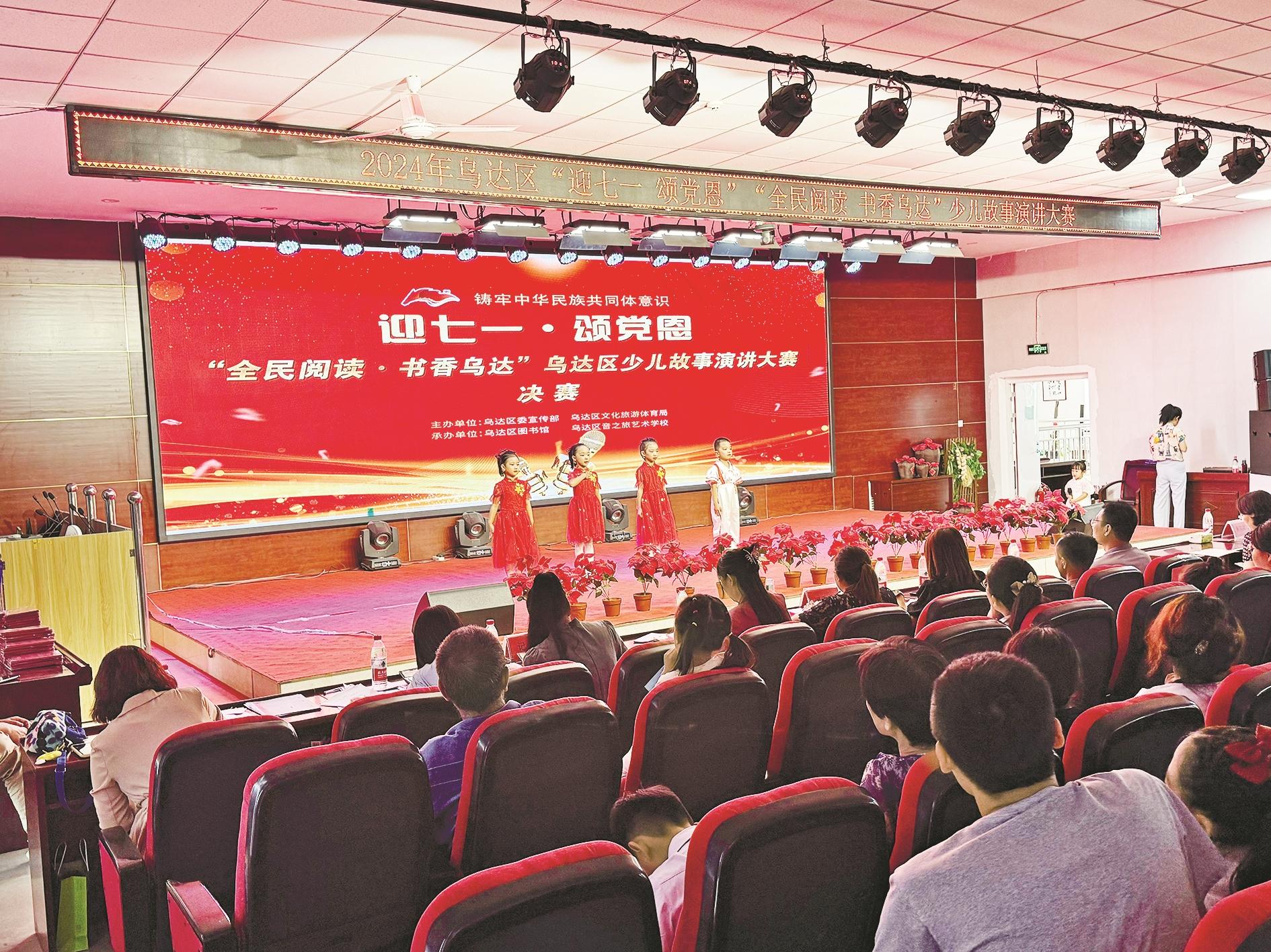 为庆祝中国共产党成立103周年,弘扬爱党爱国精神,传承中华优秀传统文化,深入推广全民阅读,6月29日,乌达区举办“迎七一 颂党恩”“全民阅读·书香乌达”少儿故事演讲大赛。 (段维娜 摄)