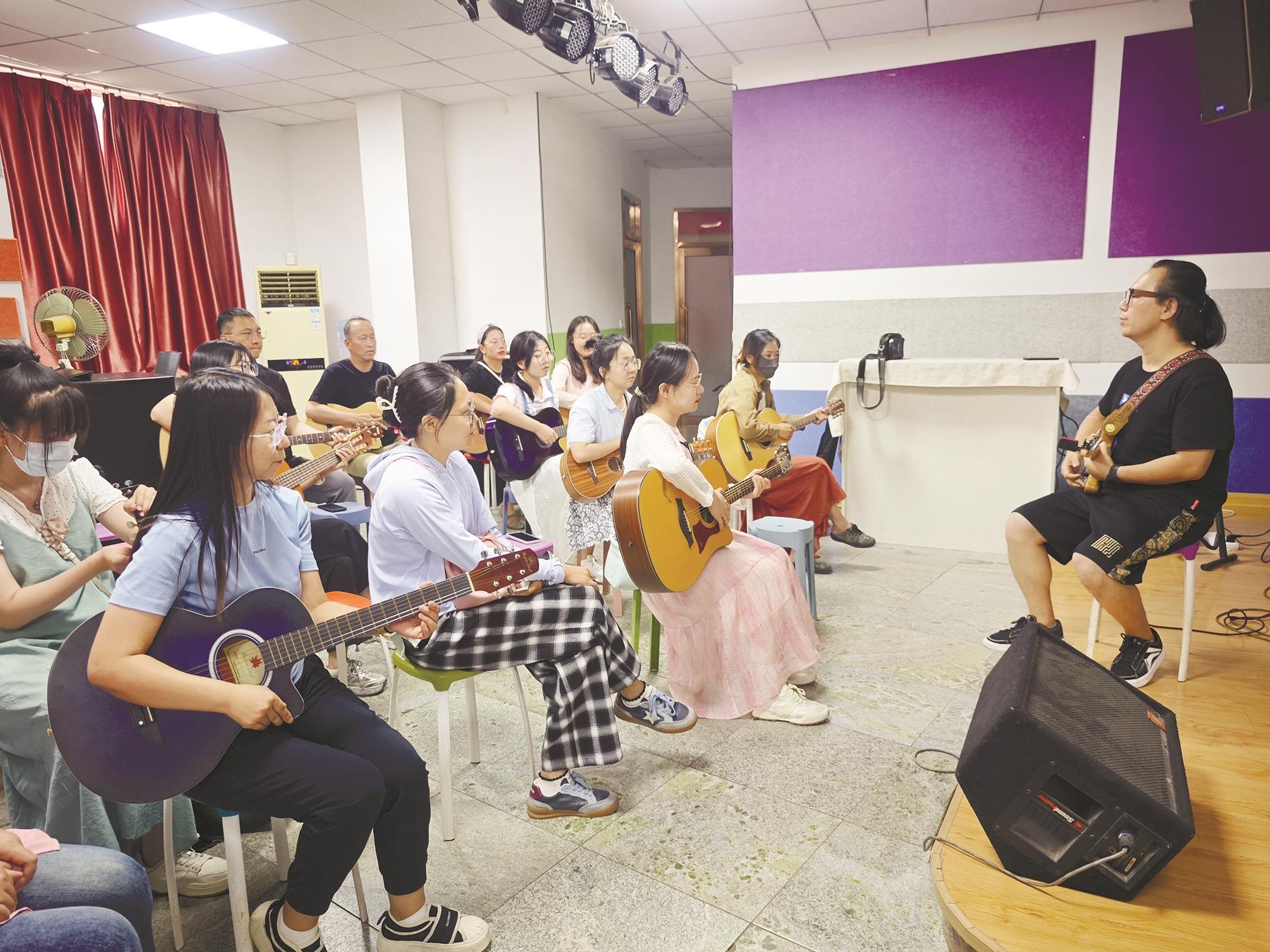 6月22日,在瀚峰乐器的教室内,一堂吉他体验课正精彩开讲。据了解,“青年夜校”是由共青团乌海市委员会、市直机关工委共同为乌海青年搭建的业余生活学习平台,围绕文化艺术、职业发展等推出定制“学习套餐”,通过提供灵活的学习时间和优质的教育资源,为青年“充电续航”。截至目前,青年夜校开设24门课程,共750余人报名参加。