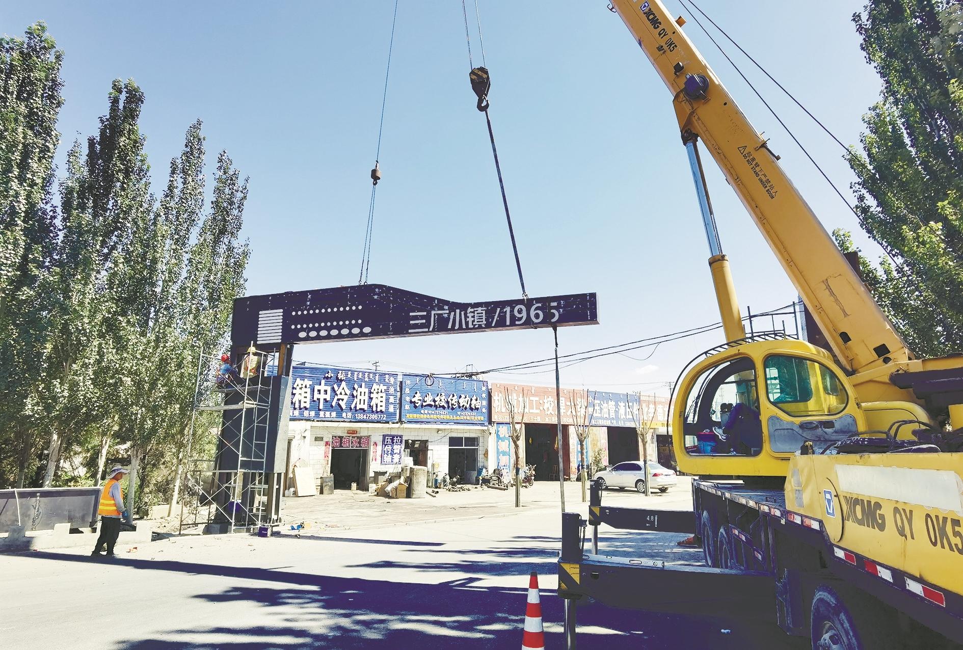 7月3日,极具年代特色的“三厂小镇/1965”取代了幸福社区原有标牌,道路两侧绿色梳理工作正在开展,这是海勃湾区南部城区整体提质工程中的一项。南部城区整体提质工程包括京藏高速公路海勃湾收费所出入口周围护坡提质改造、海拉南路及两侧市政设施提质改造、海达街东延及周边交通接驳、海达街两侧风貌提质改造、南加油站口袋公园建设工程、京藏高速公路海勃湾收费所出入口客货运分流管控及交通组织改善提升改造等6个子项目。目前,各项目正紧锣密鼓地进行中。 (赵荣 摄)