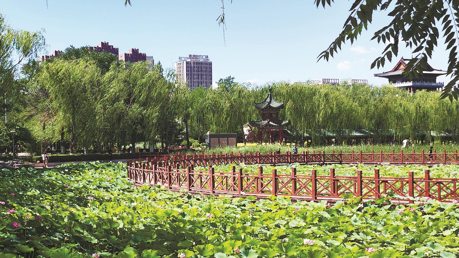 又是一年荷花香。近日,在市人民公园荷花池内,青荷盖绿水,芙蓉披红鲜,引得游人驻足观赏。 (赵政宇 摄)