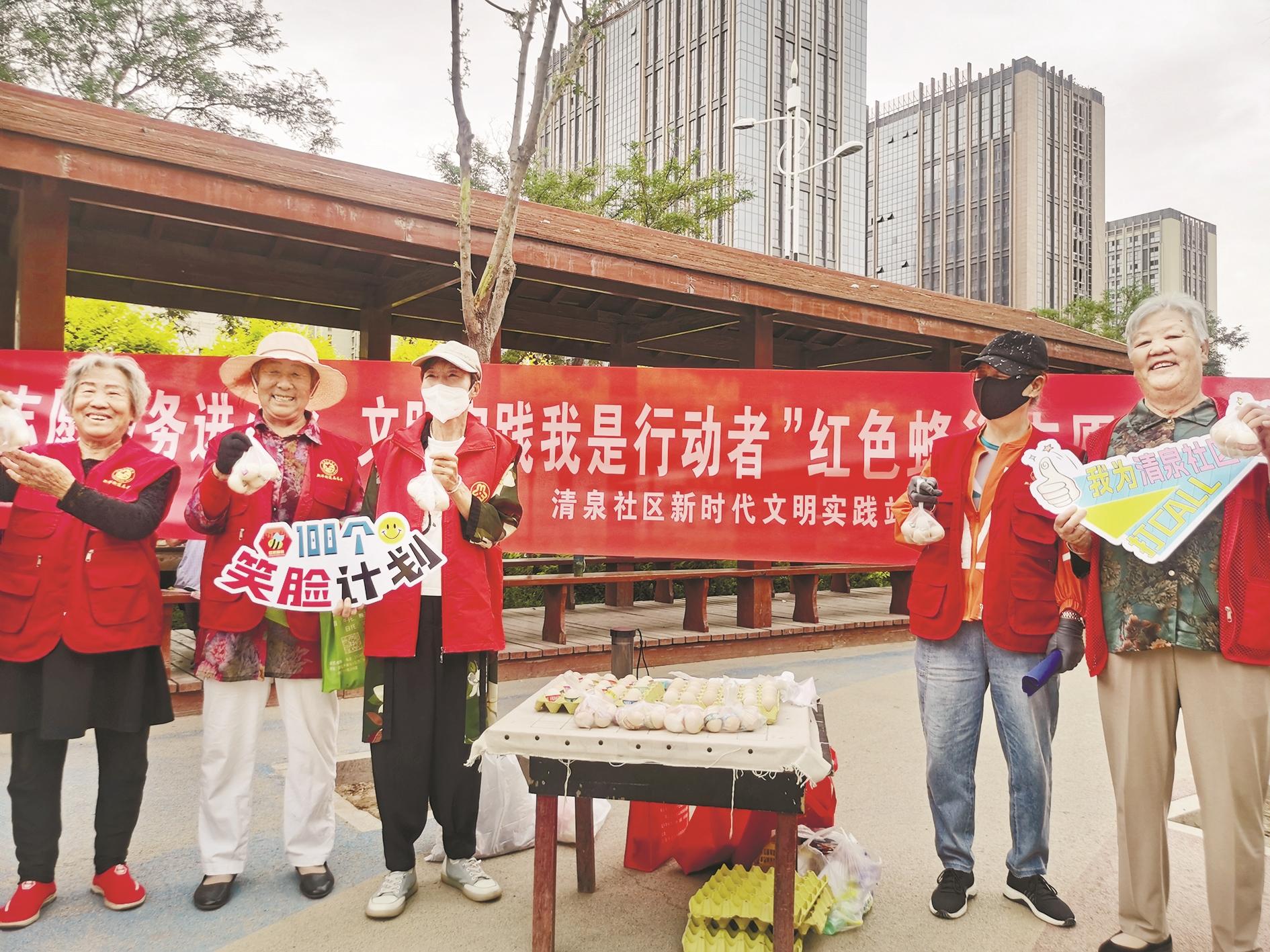 近日,海勃湾区新华街道清泉社区开展“志愿服务进小区 文明实践我是行动者”志愿服务活动。工作人员组织居民参与捡拾绿地白色垃圾、烟头和清理楼道乱堆乱放等志愿服务,参与者可兑换鸡蛋。 (段维娜 摄)